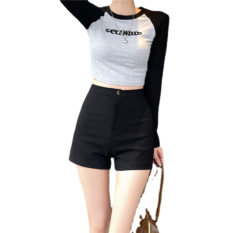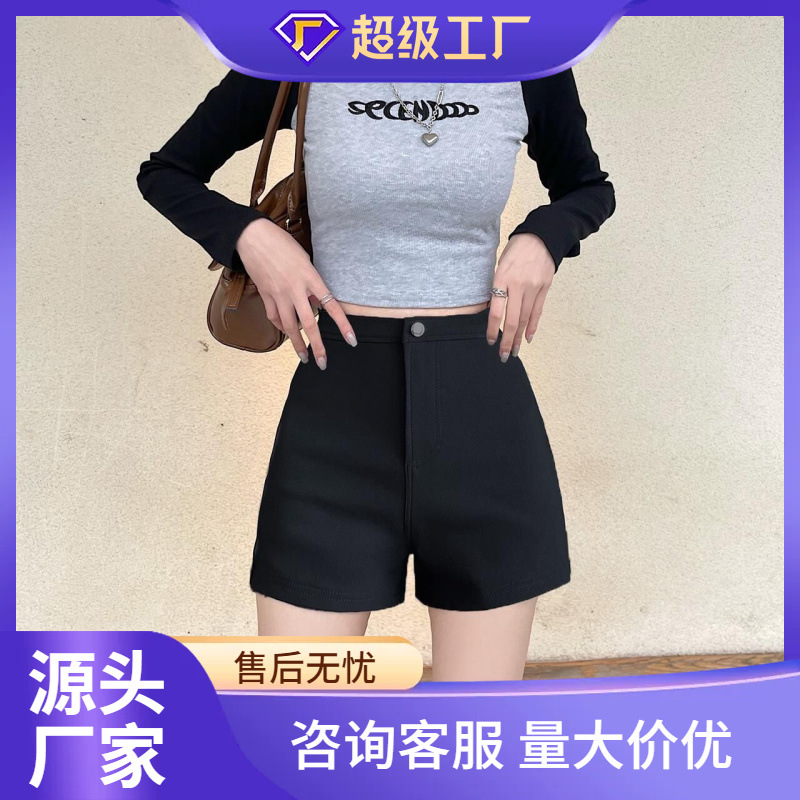 Hot Girls Black Shorts Suit Shorts 2024 Early Spring New Women's High Waist Slimming Straight Wide Leg Short Pants Hot