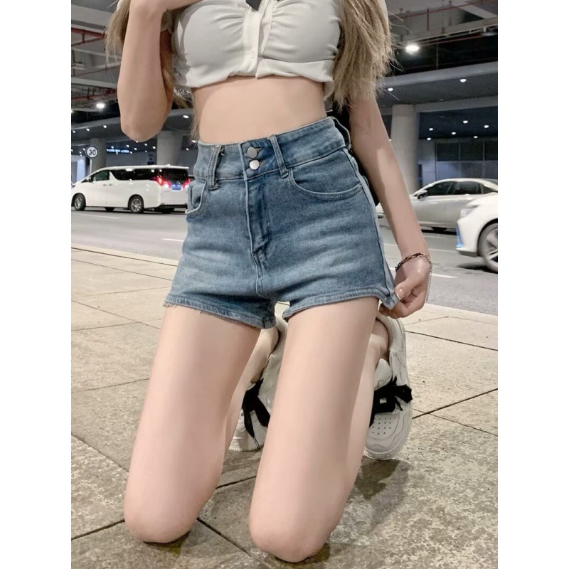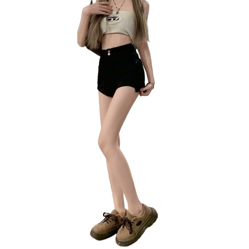 | nameOriginal | Hot Girls Denim Shorts Women's Summer New Double Buckle Slim Look Sexy American Retro High Waist Stretch A- Word Hot Pants |