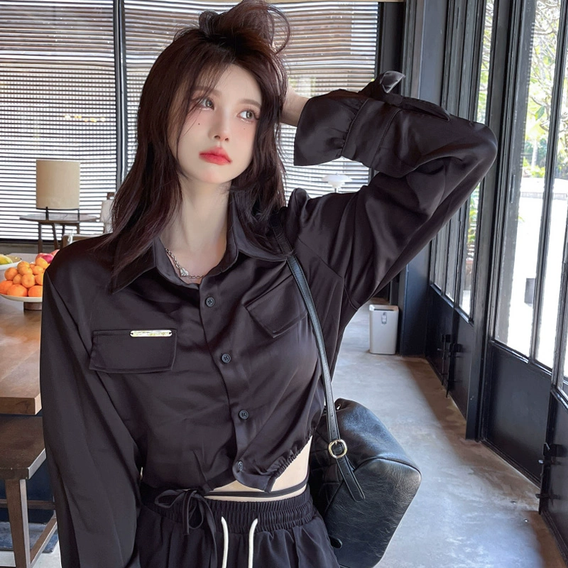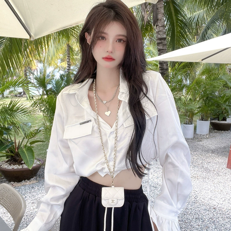 | nameOriginal | Hot girl's lace-up spring and autumn chic and beautiful short shirt |