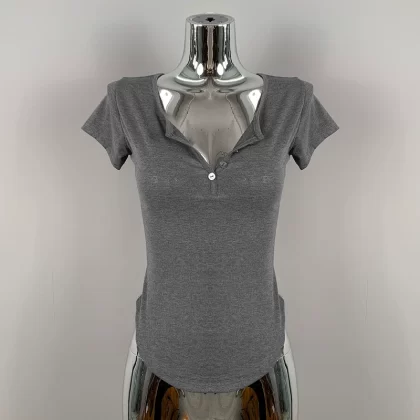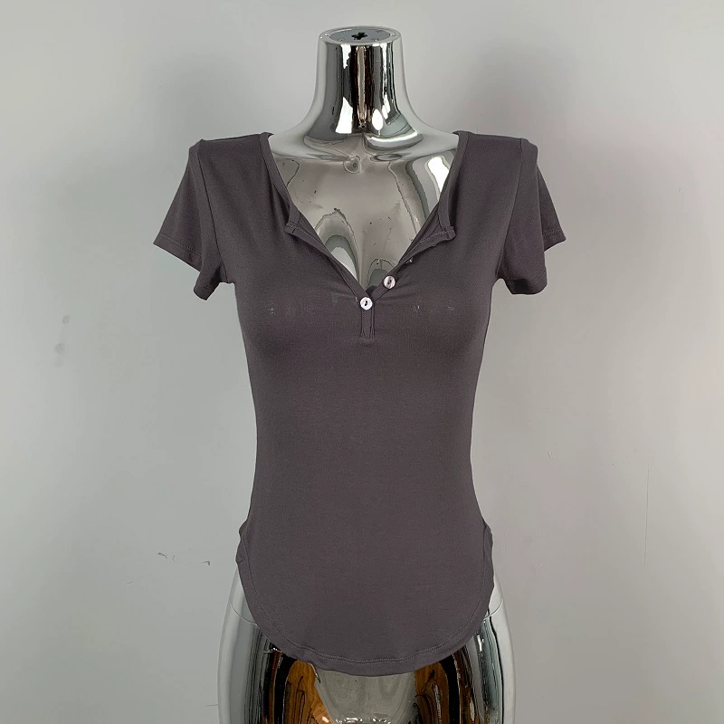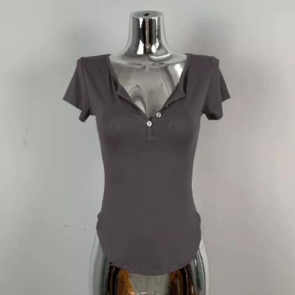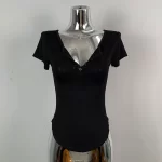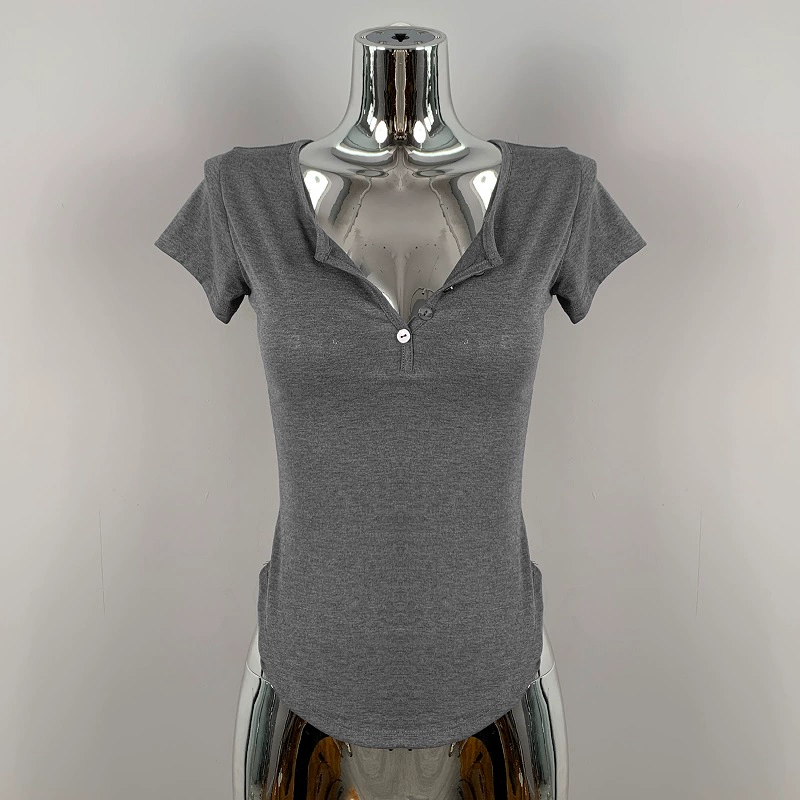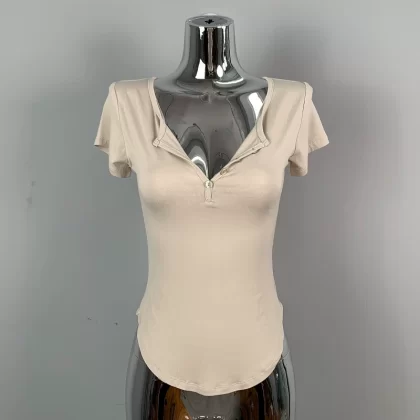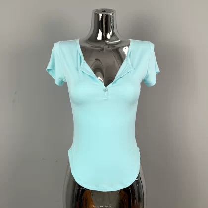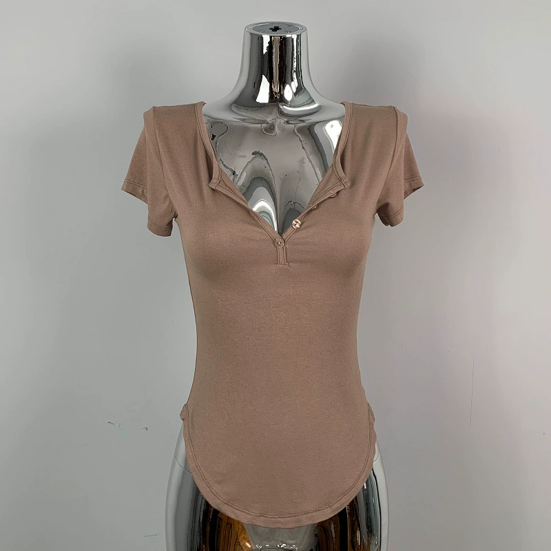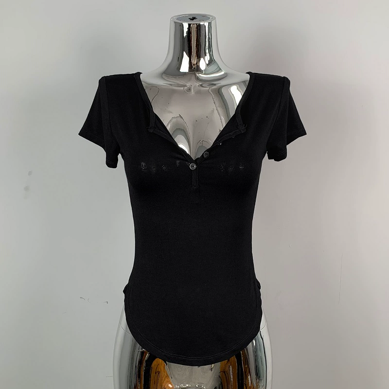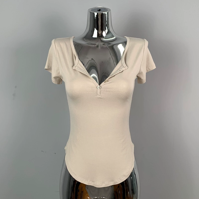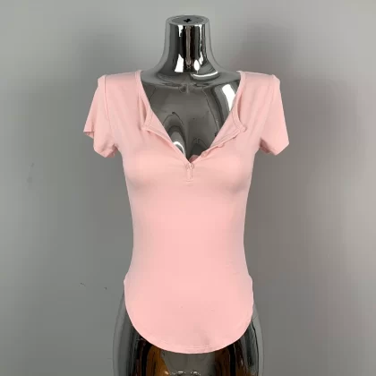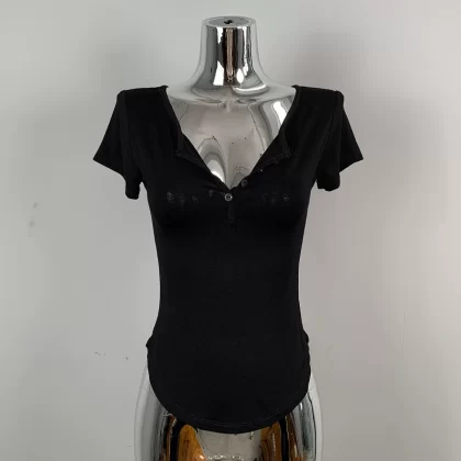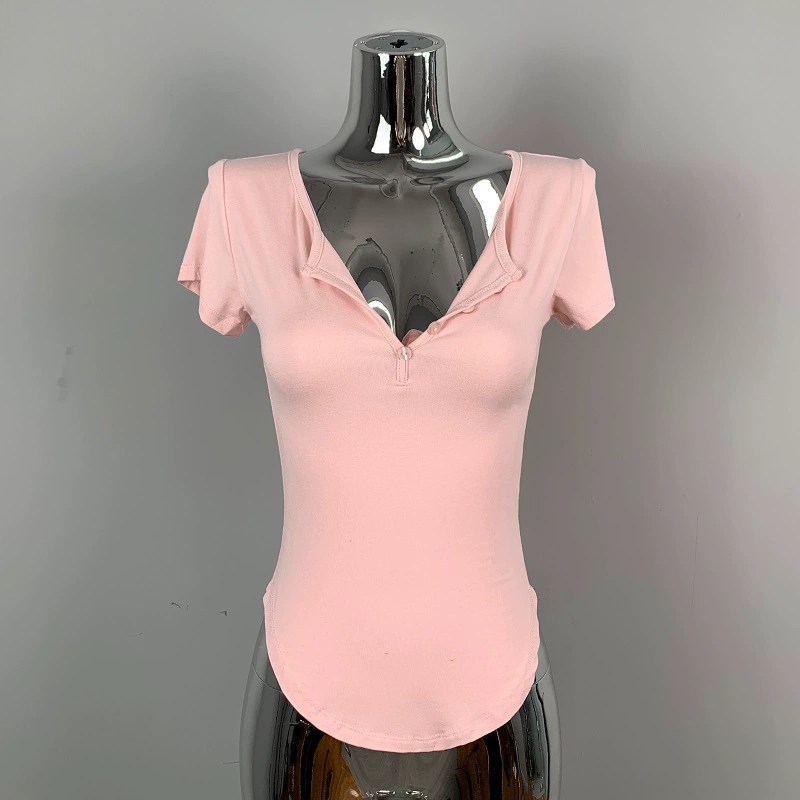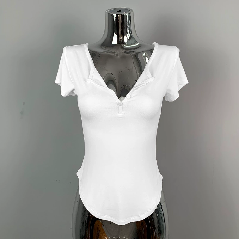 | nameOriginal | Hot girl's sexy slightly see-through half-open collar tight short-sleeved T-shirt for women summer design, feminine, breast-revealing big top |