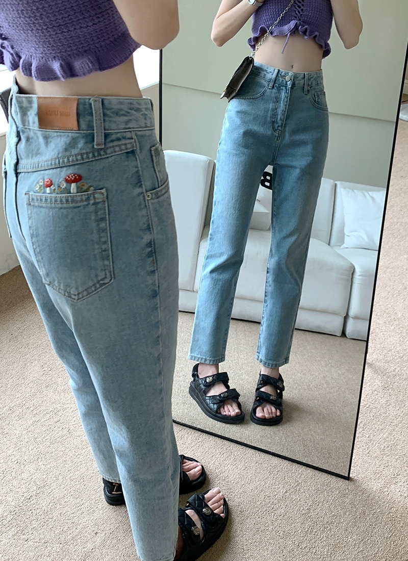 | nameOriginal | Hot girl's spring high-waisted nine-point pants are versatile and slimming with embroidery |