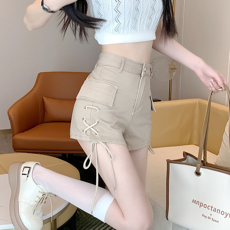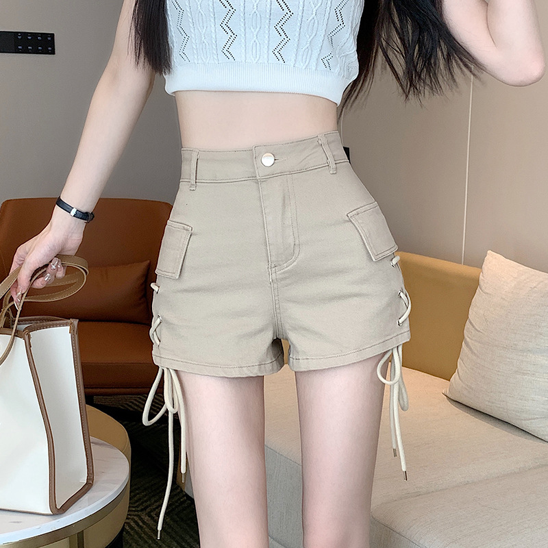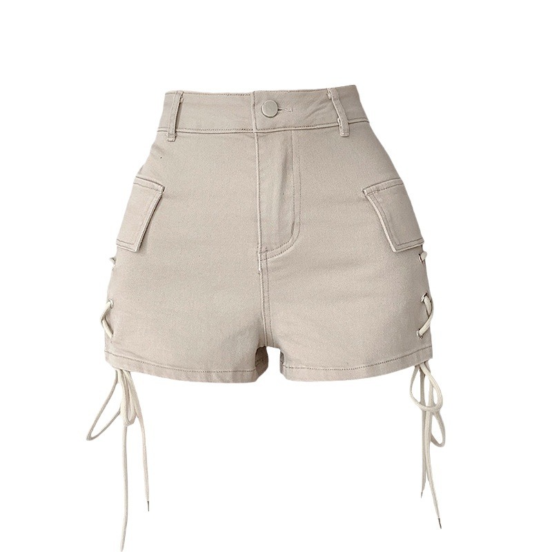 | nameOriginal | Hot Girls Stretch Denim Shorts Women's Summer New High Waist Slim Fit Bag Hip Slimming Cross Drawstring Design Hot Pants |