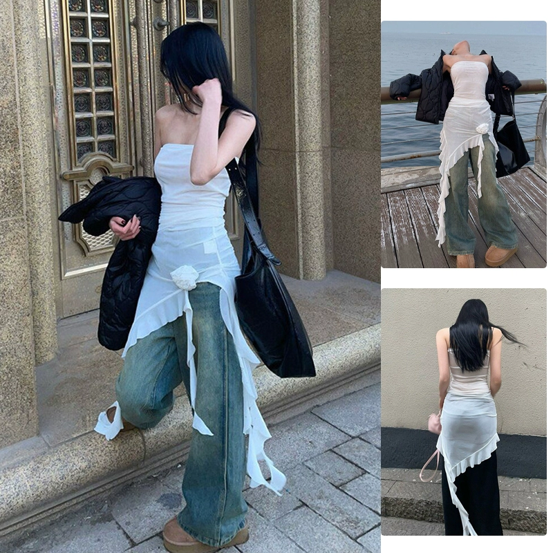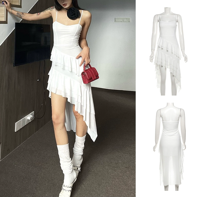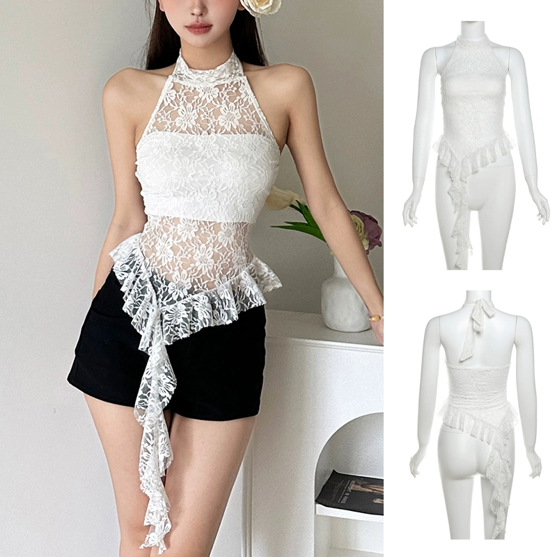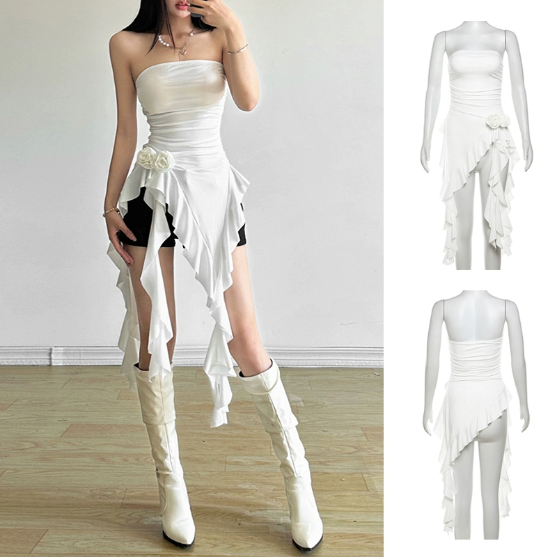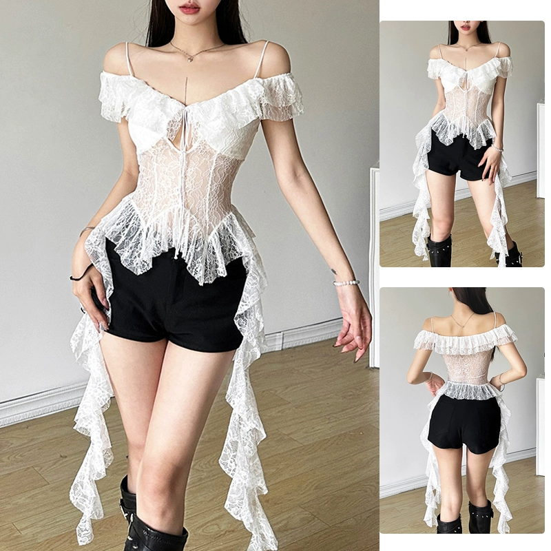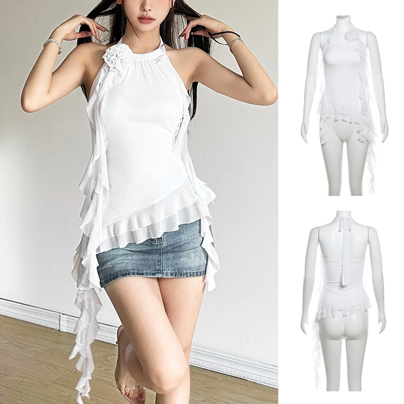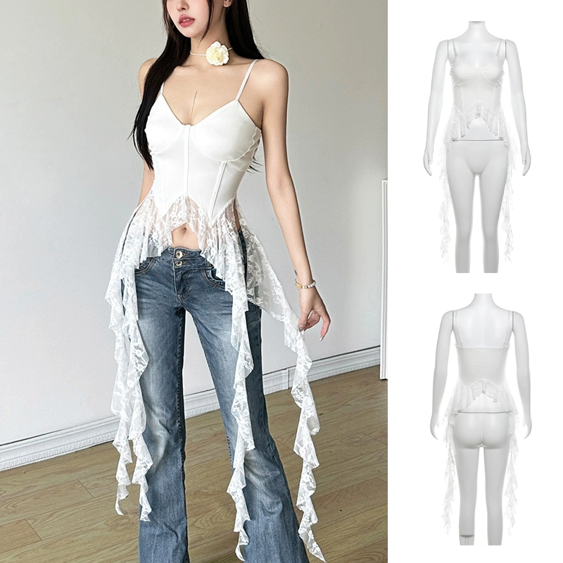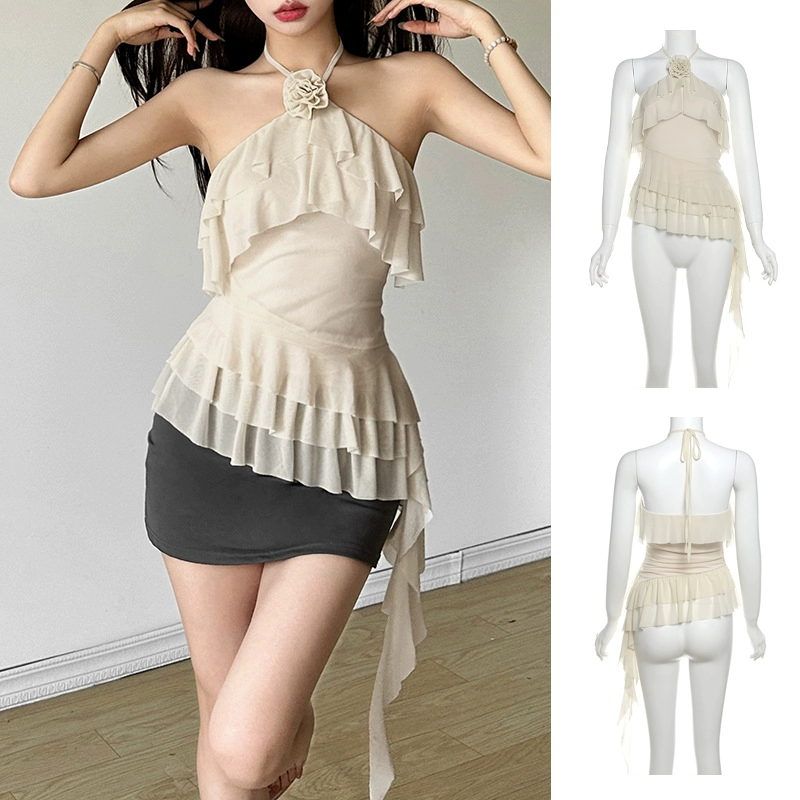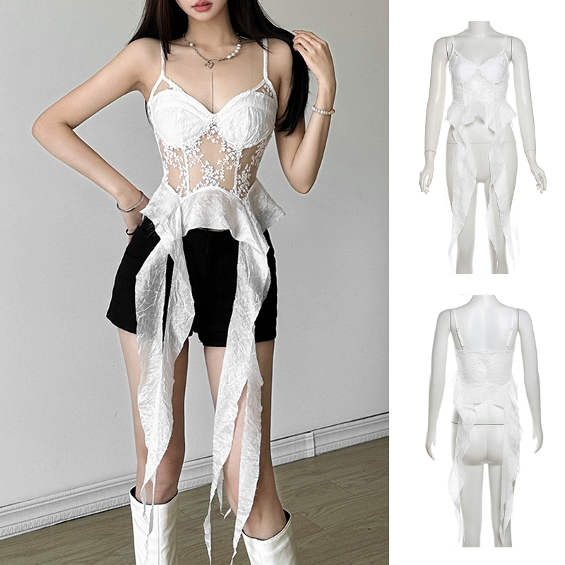 | nameOriginal | Hot girls summer vacation chic ribbon tops women's sweet and spicy jazz irregular design girl group sexy singing costumes |