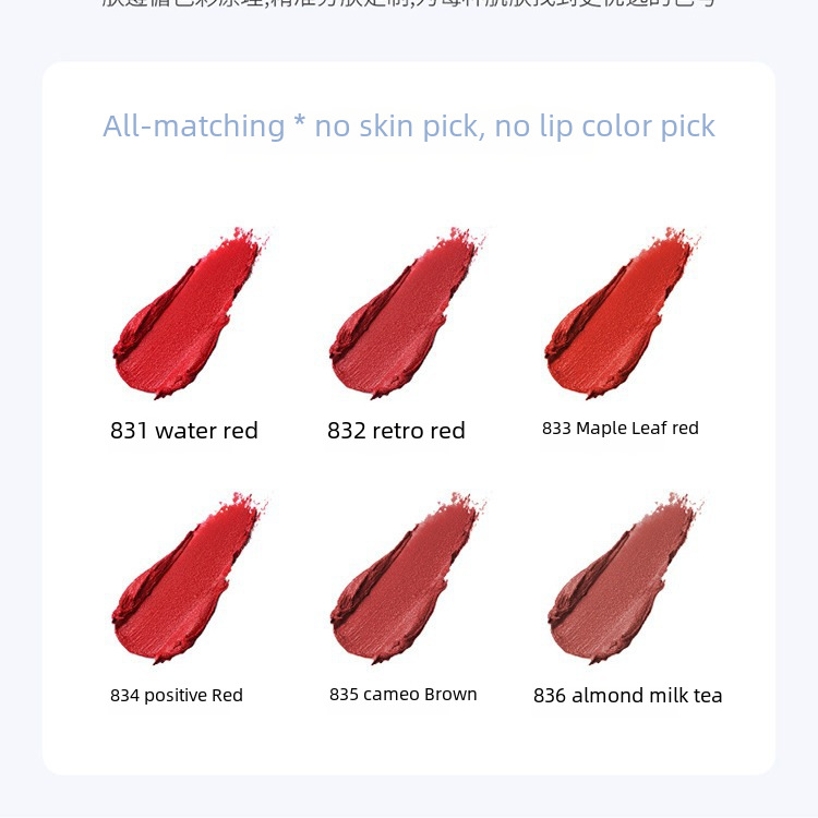 | nameOriginal | Hot list MYG non-stick mask non-stick Cup lipstick lipstick light matte waterproof sweat-proof color small white tube lipstick |
