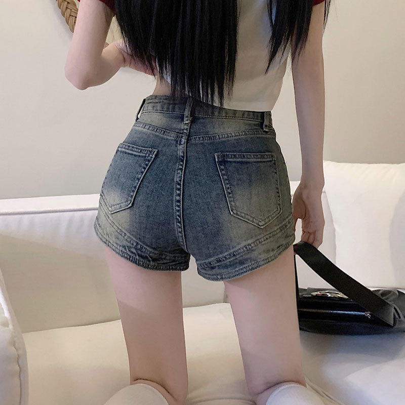 | nameOriginal | Hot Pants for Hot Girls American Style Vintage Old-fashioned Denim Shorts Women's Summer Short High Waist Elastic Base Hip Pants |
