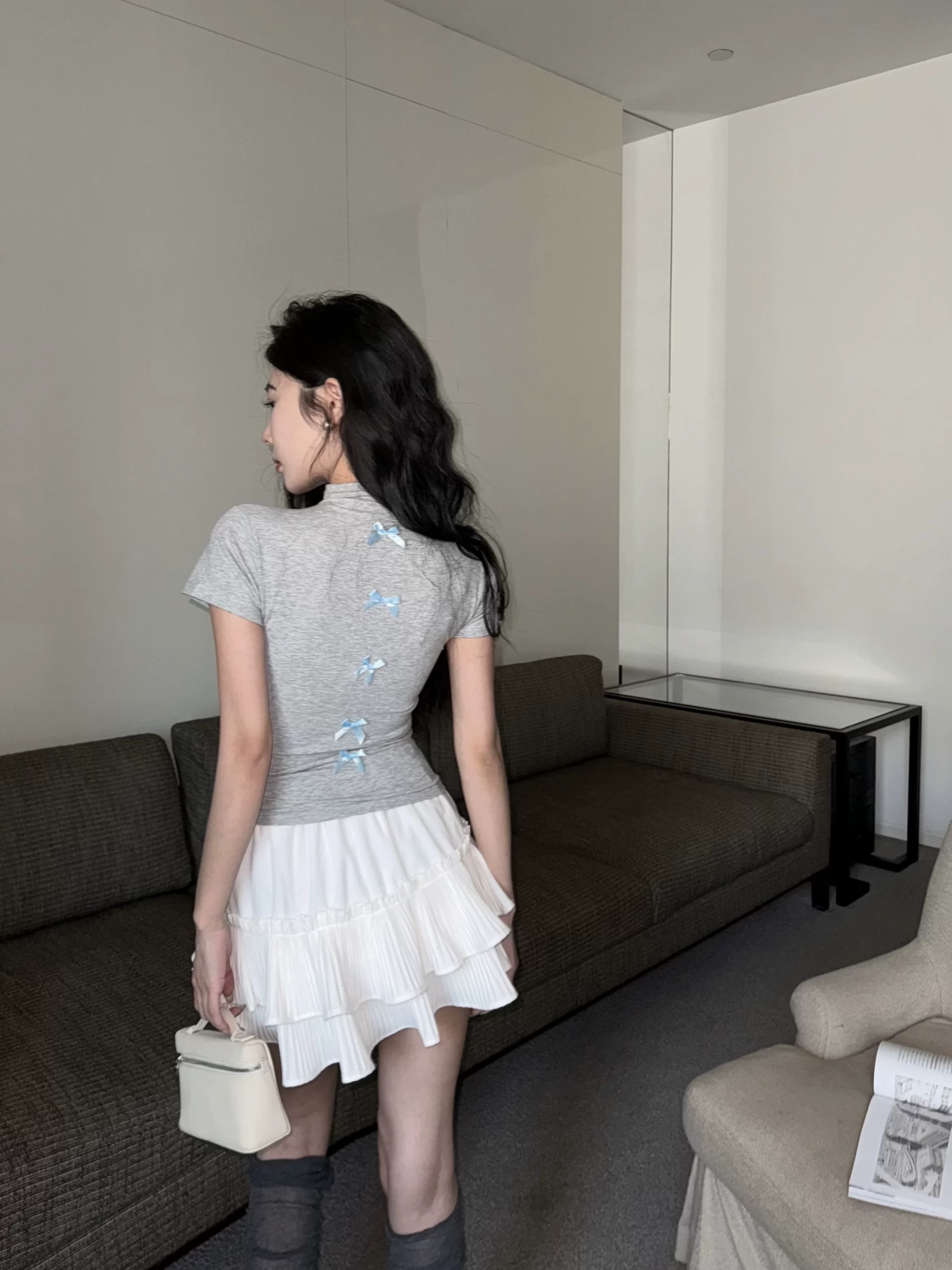 | nameOriginal | Hot rhinestone short-sleeved right shoulder summer slim top with bow tie |
