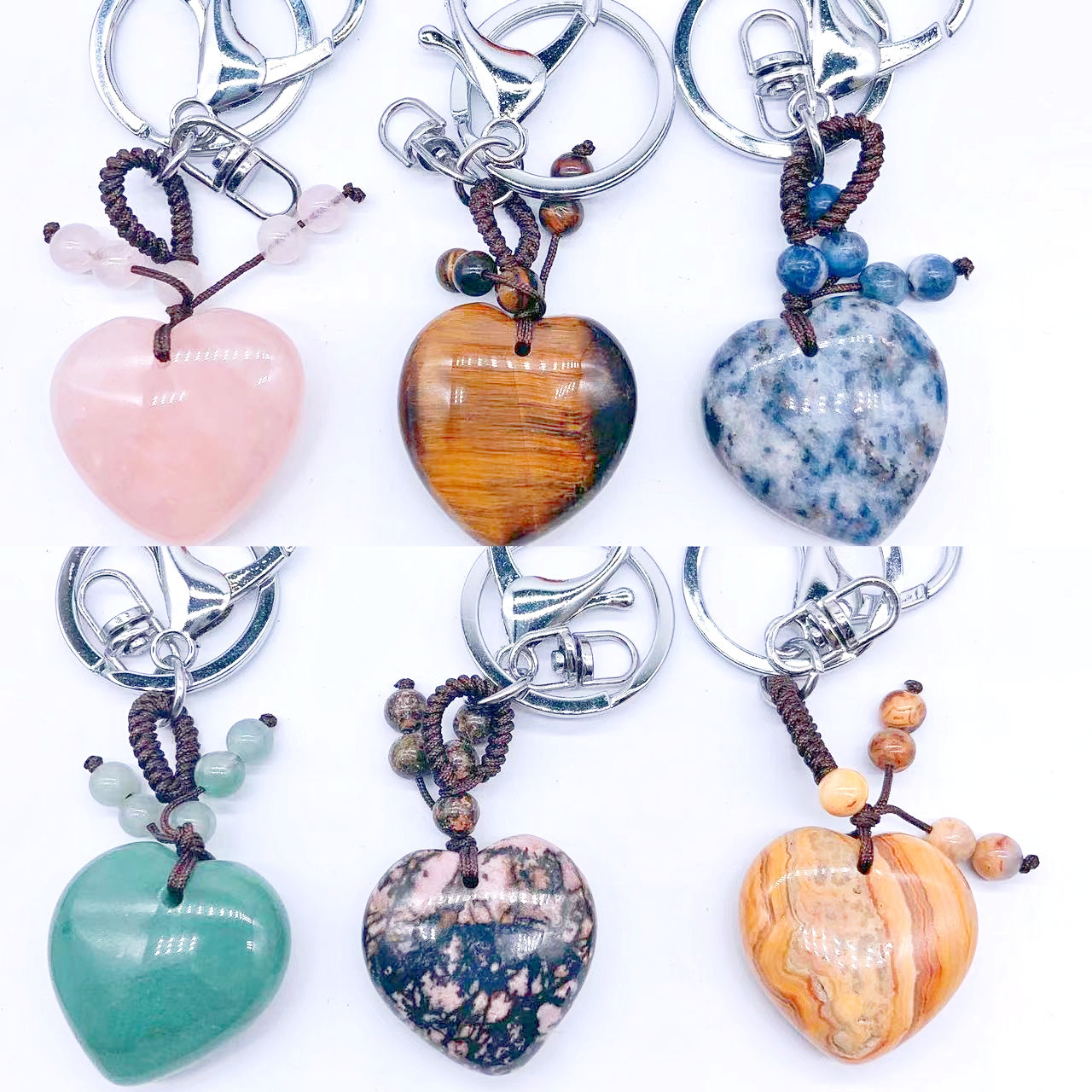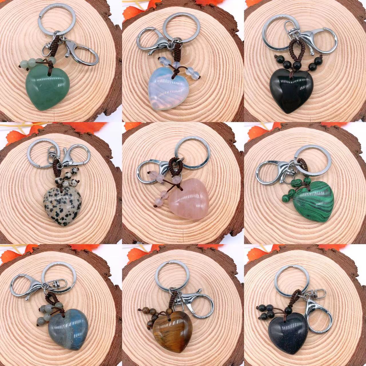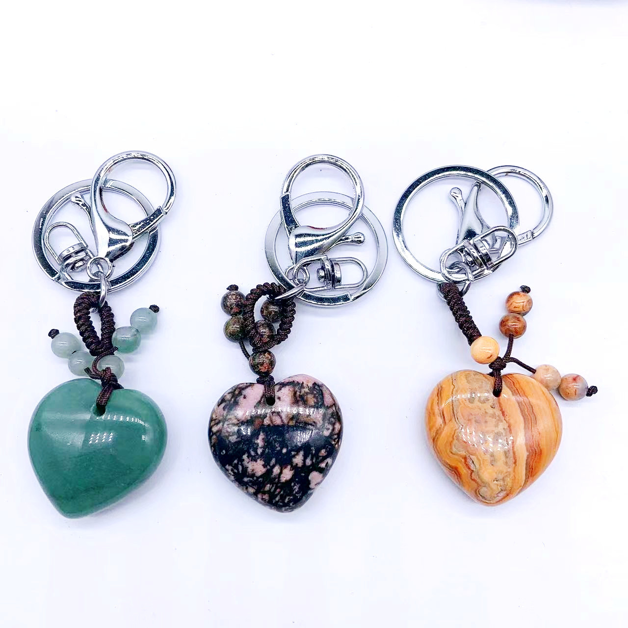 | nameOriginal | Hot sale natural stone Crystal Love key chain agate peach heart hand woven tassel safe buckle lovers jewelry |