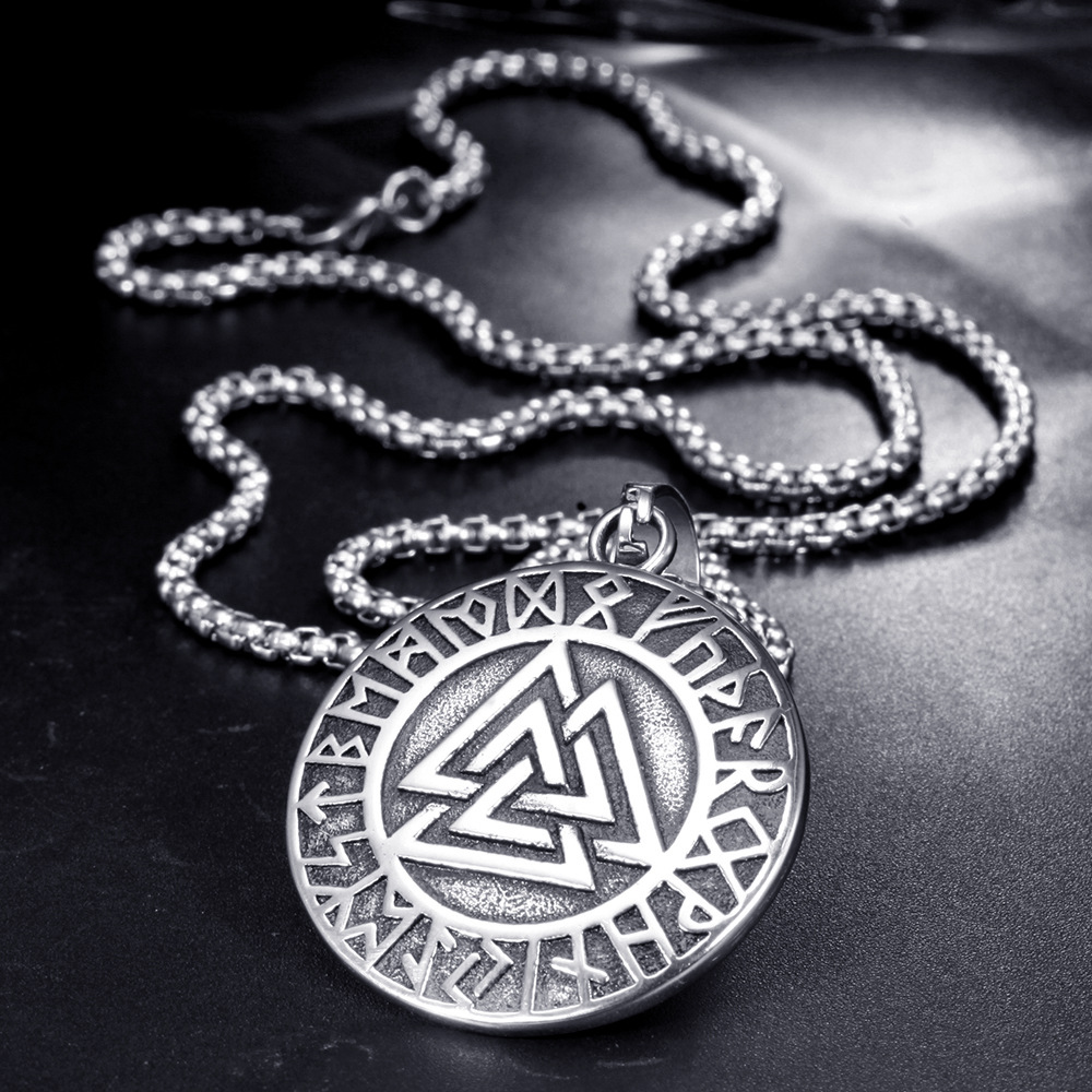 | nameOriginal | Hot sale Nordic Viking pendant mysterious triangle titanium steel round pendant men's necklace wholesale |