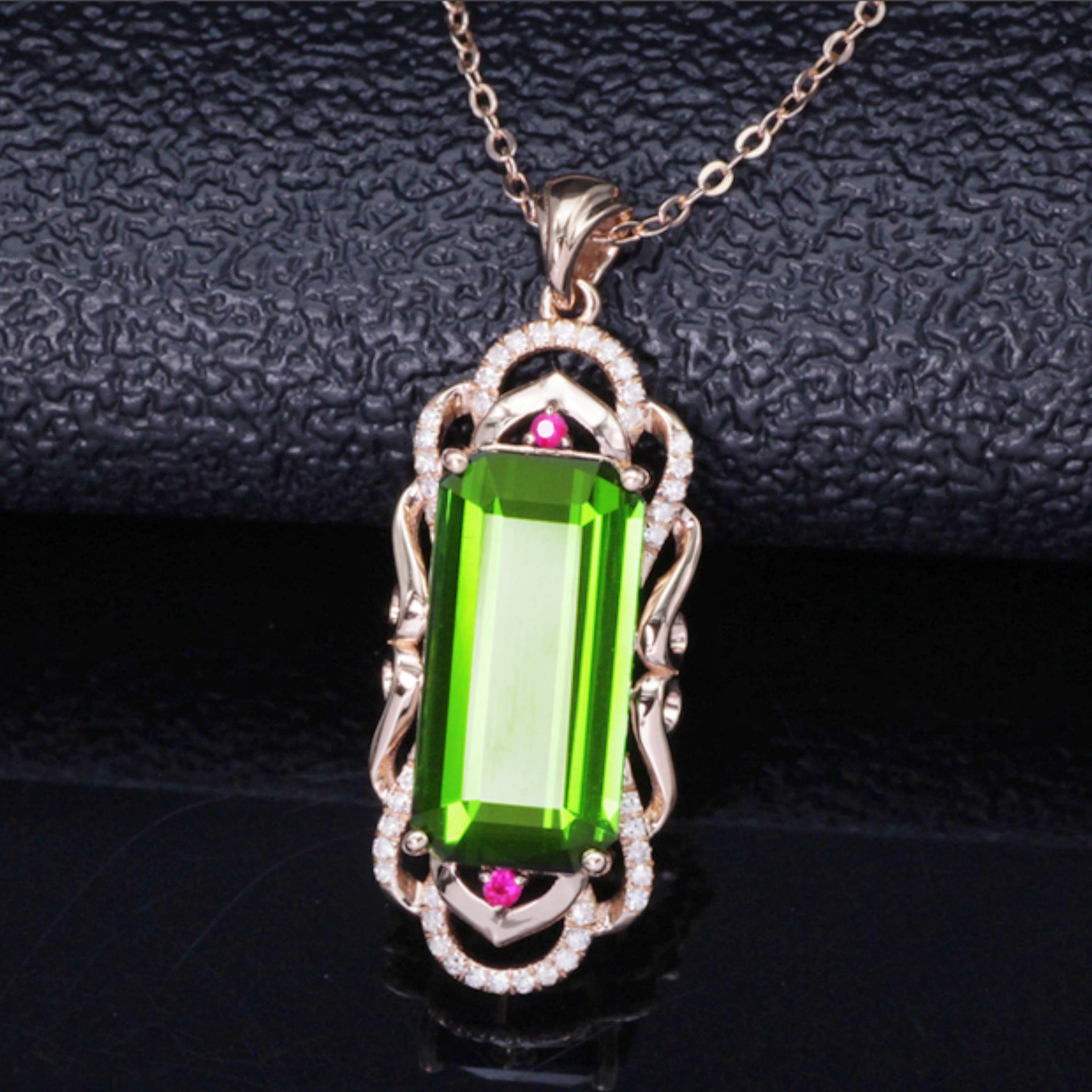 Hot Sale round rectangular pendant Brazil rich green Tourmaline gemstone pendant diamond red zircon rectangular gemstone pendant