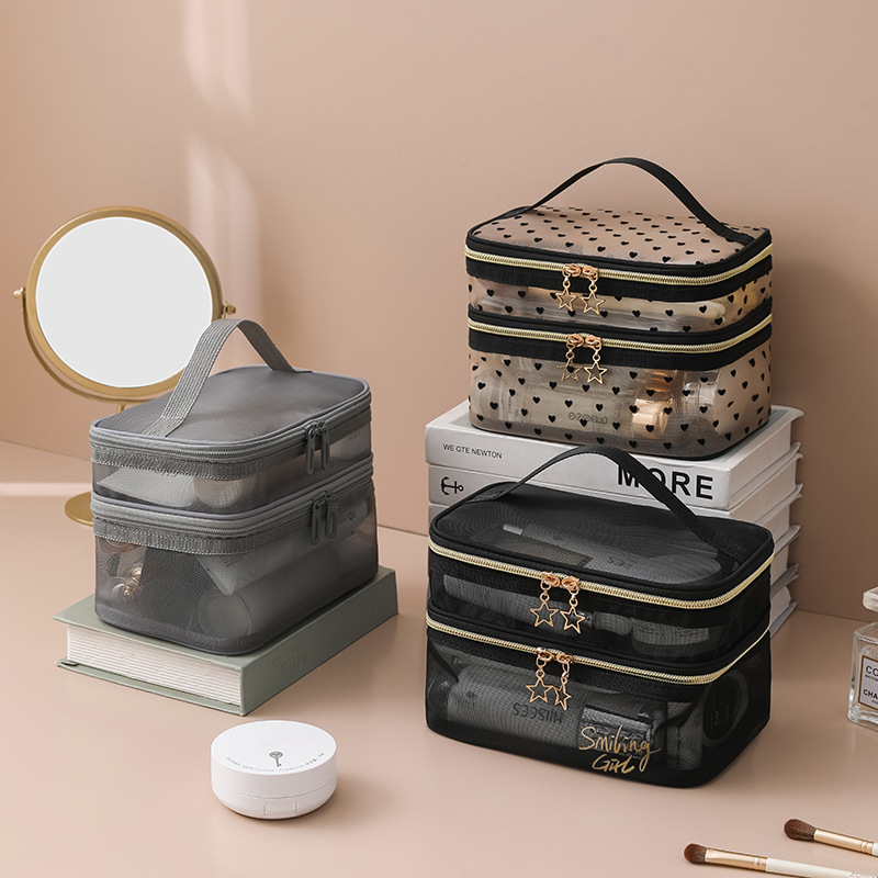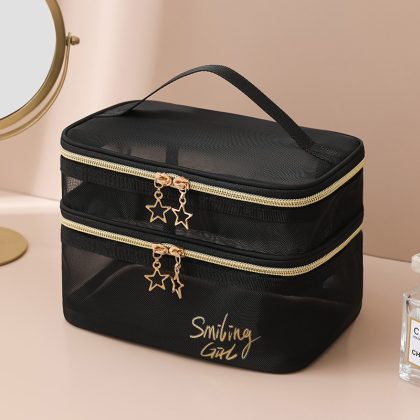 | nameOriginal | Hot Sale Transparent Mesh Pillow Cosmetic Bag Double Layer Storage Portable Wash Bag Mesh Large Capacity Simple Storage Bag  |
