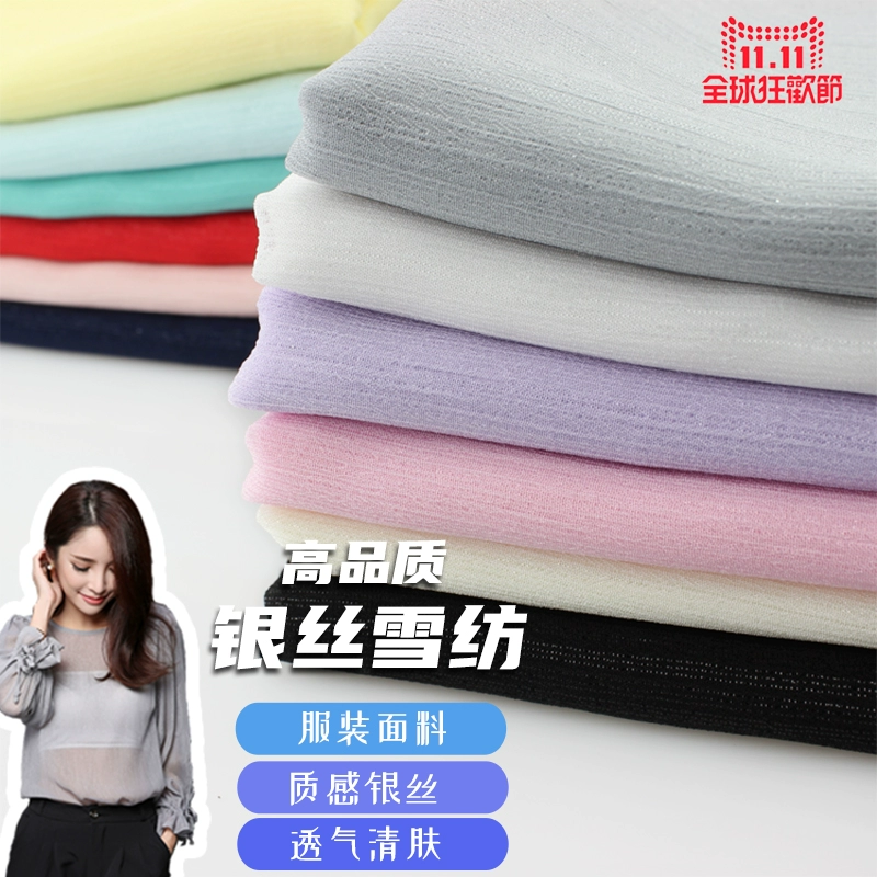 | nameOriginal | Hot selling Chinese style silver silk wrinkled silk crepe chiffon wrinkled fabric Hanfu ancient costume women's stage wear Lolita fabric |