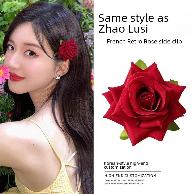 | nameOriginal | Hot-selling flannel rose flower hairpin head flower brooch New Year bridal head flower coil hair flower edge clip artificial flower headdress |