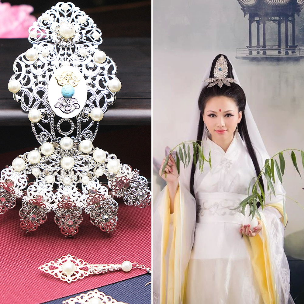 | nameOriginal | Hot selling Guanyin Bodhisattva headdress handmade phoenix crown white veil Guanyin bottle three-piece set ancient costume Hanfu accessories hair accessories |