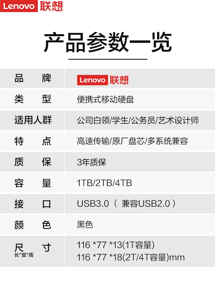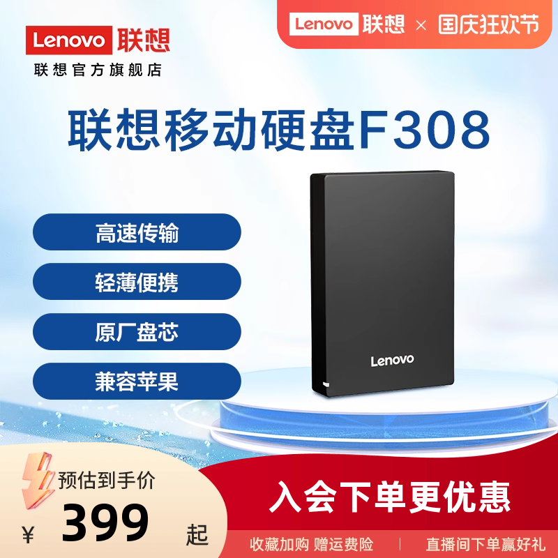 [Hot -selling explosion] Lenovo mobile hard disk F308 1T USB3.0 high -speed transmission mobile portable external