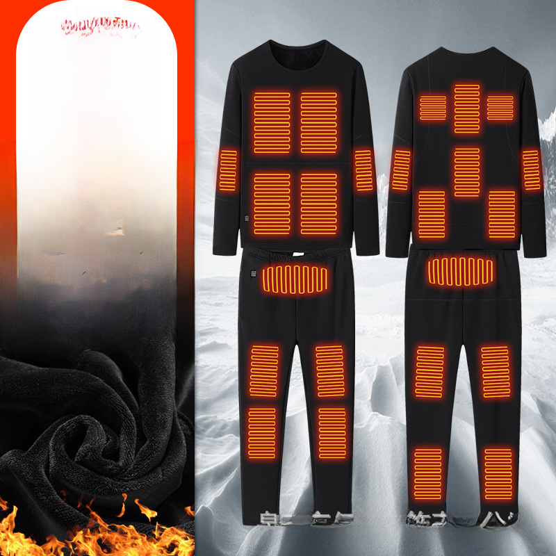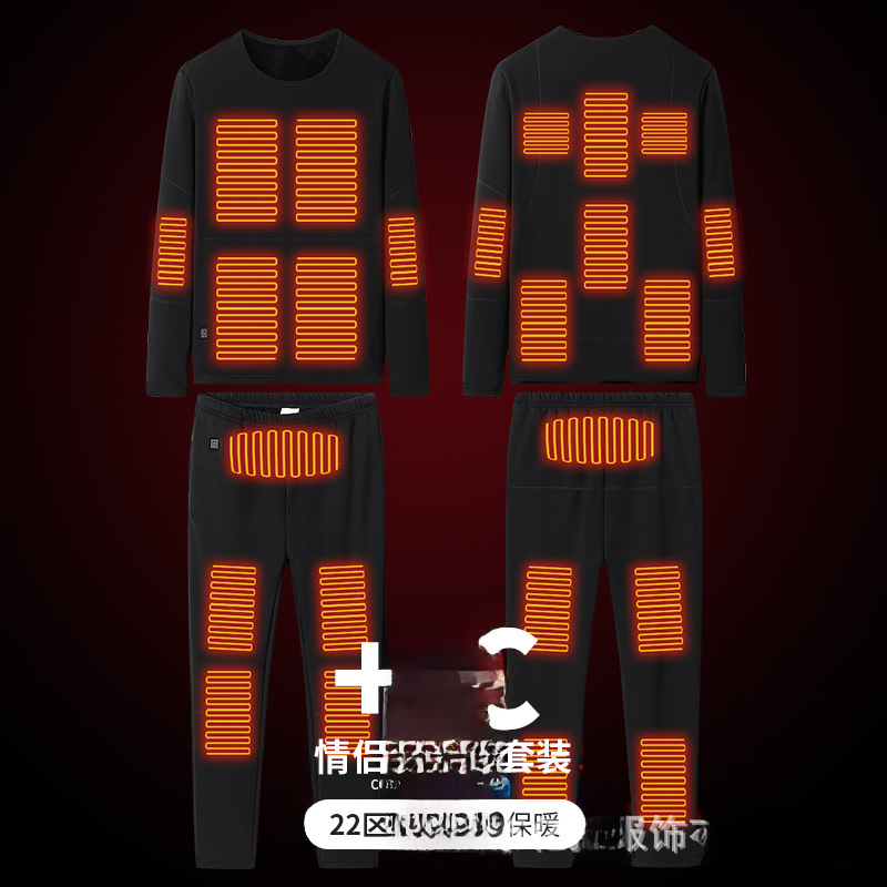 Hot smart zone 22 heating thermal underwear men's autumn clothes long pants USB charging solid color thickened cold-proof suit women