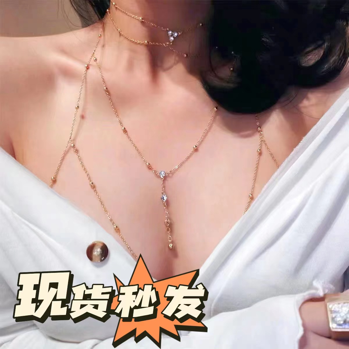 | nameOriginal | Hot Spice Girl Sexy Titanium Steel Body Chain Personalized Tassel Flash Diamond Pendant Necklace Chest Chain Women's Online Celebrity Live Chest |