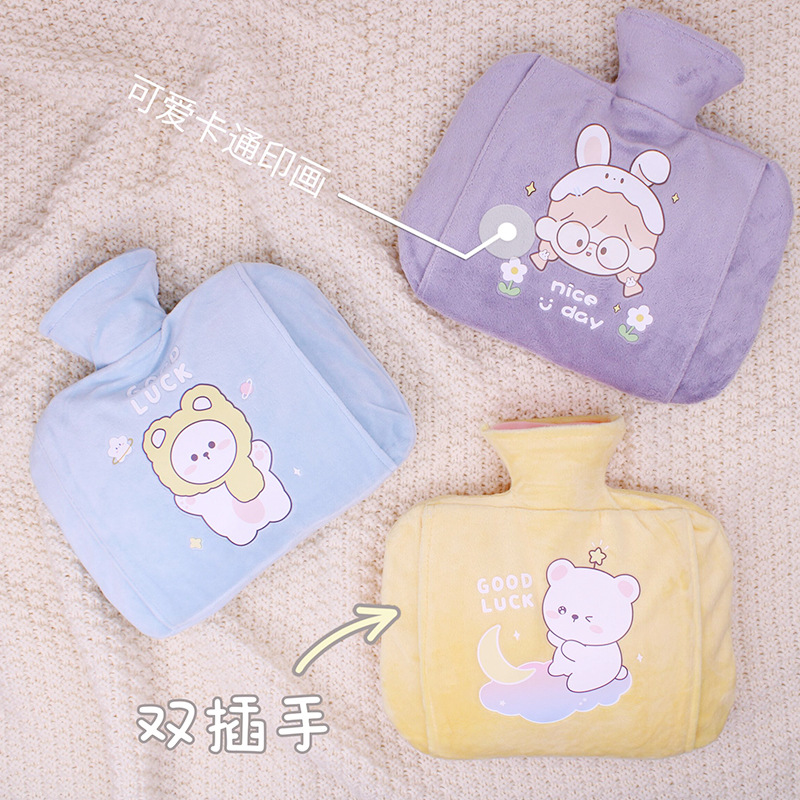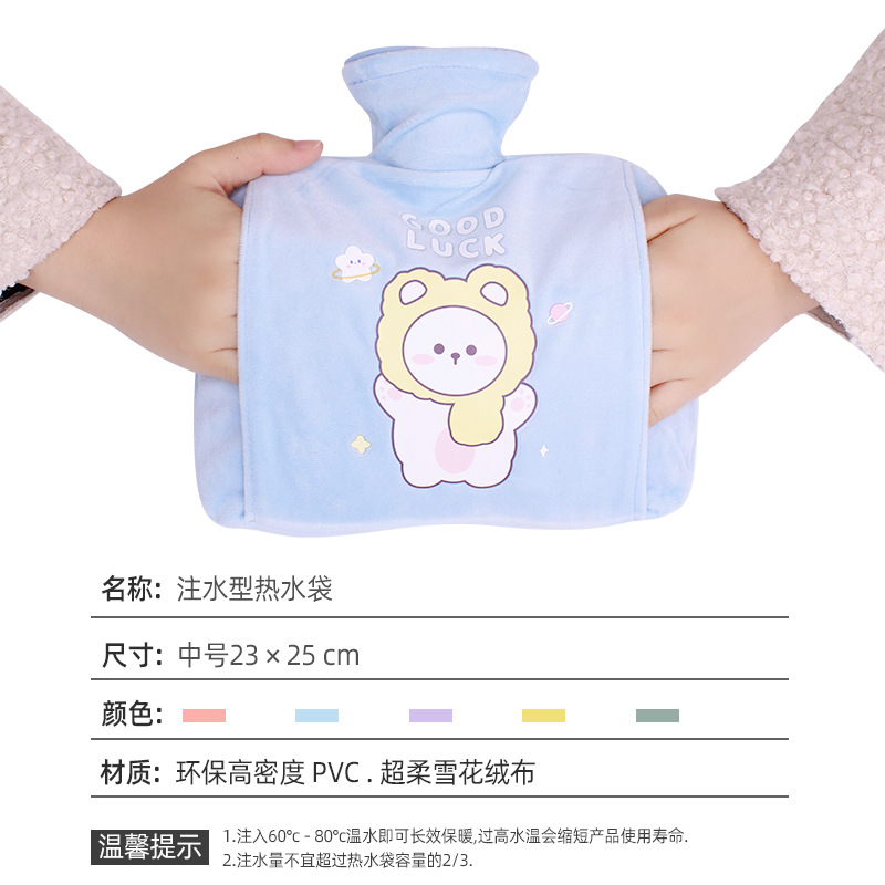 | nameOriginal | Hot water bag water injection thickened warm waist hot compress Palace belly warm handbag large female student plush cute warm water bag |