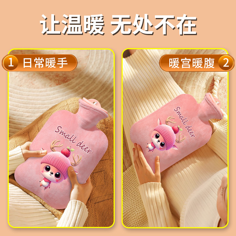 | nameOriginal | Hot water injection hot water bag cartoon thickened explosion-proof leak-proof old-fashioned warm handbag waist warming belly warming quilt hot compress bag |