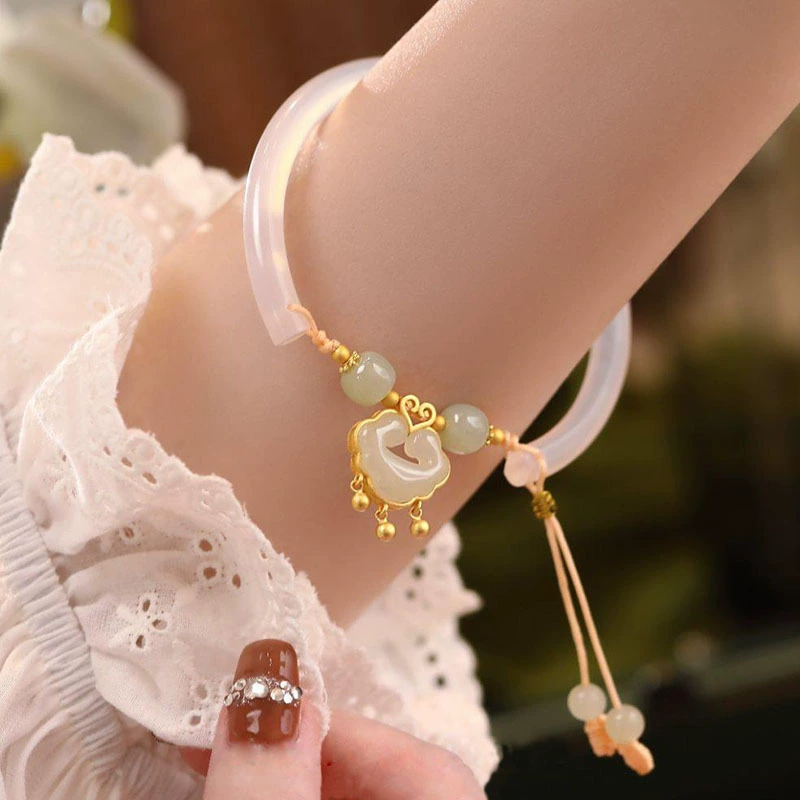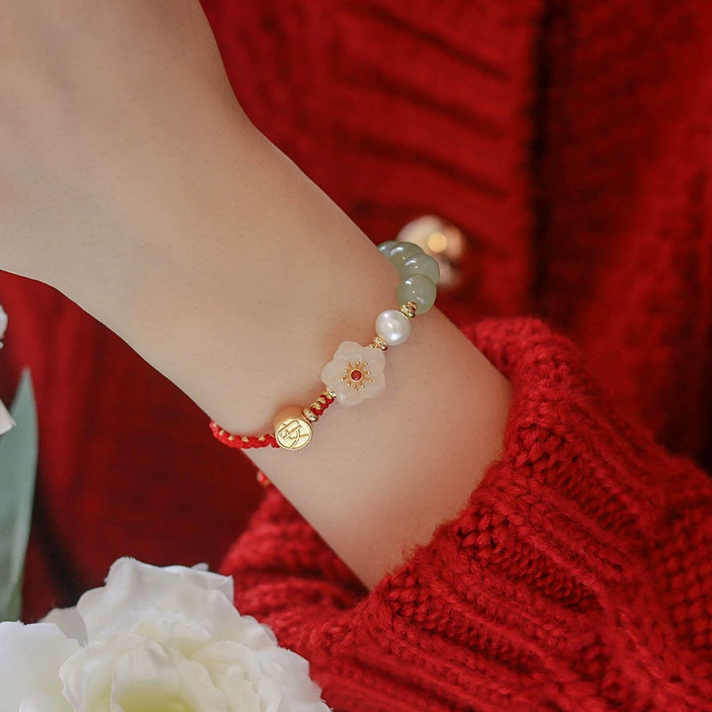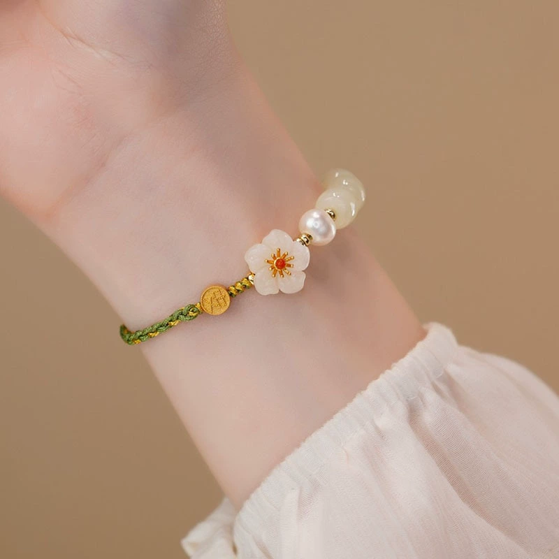 | nameOriginal | Hotan jade and begonia flower ins niche women's braided bracelet |