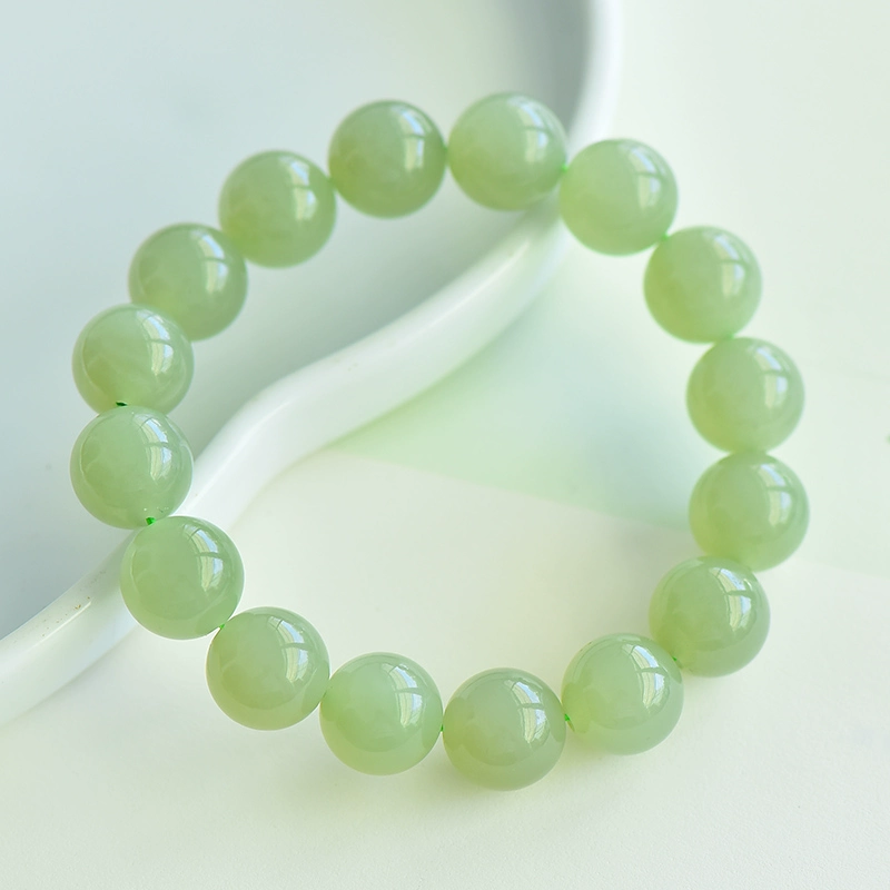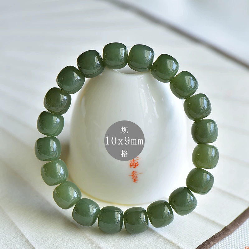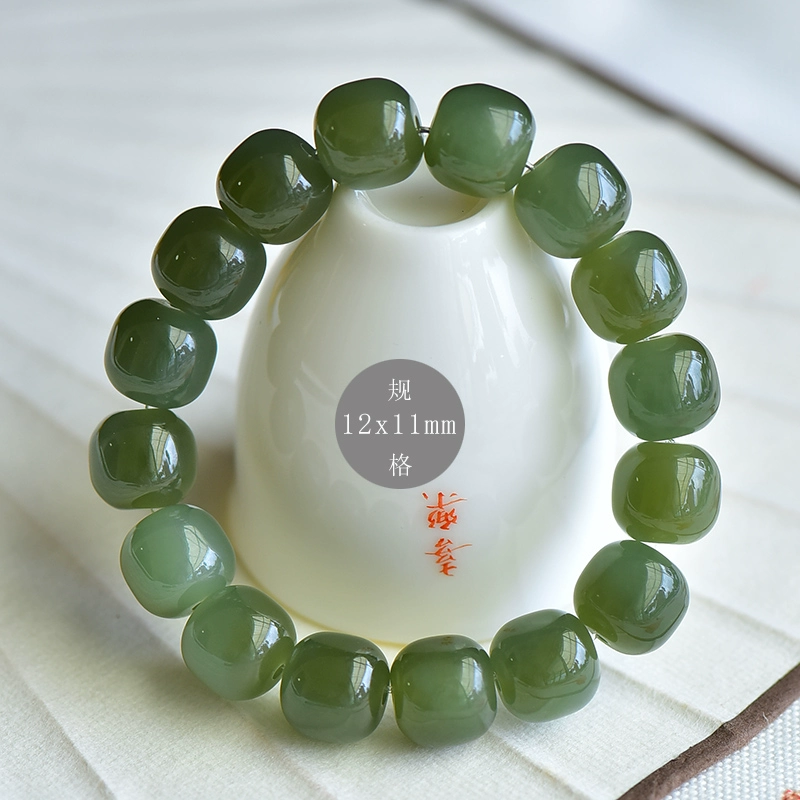 | nameOriginal | Hotan jade bracelet clear water material warm green natural Xinjiang Hotan jade bracelet old type beads for men and women |