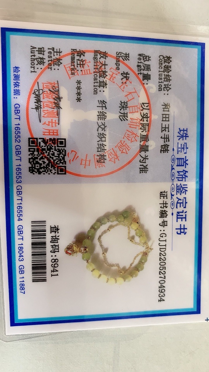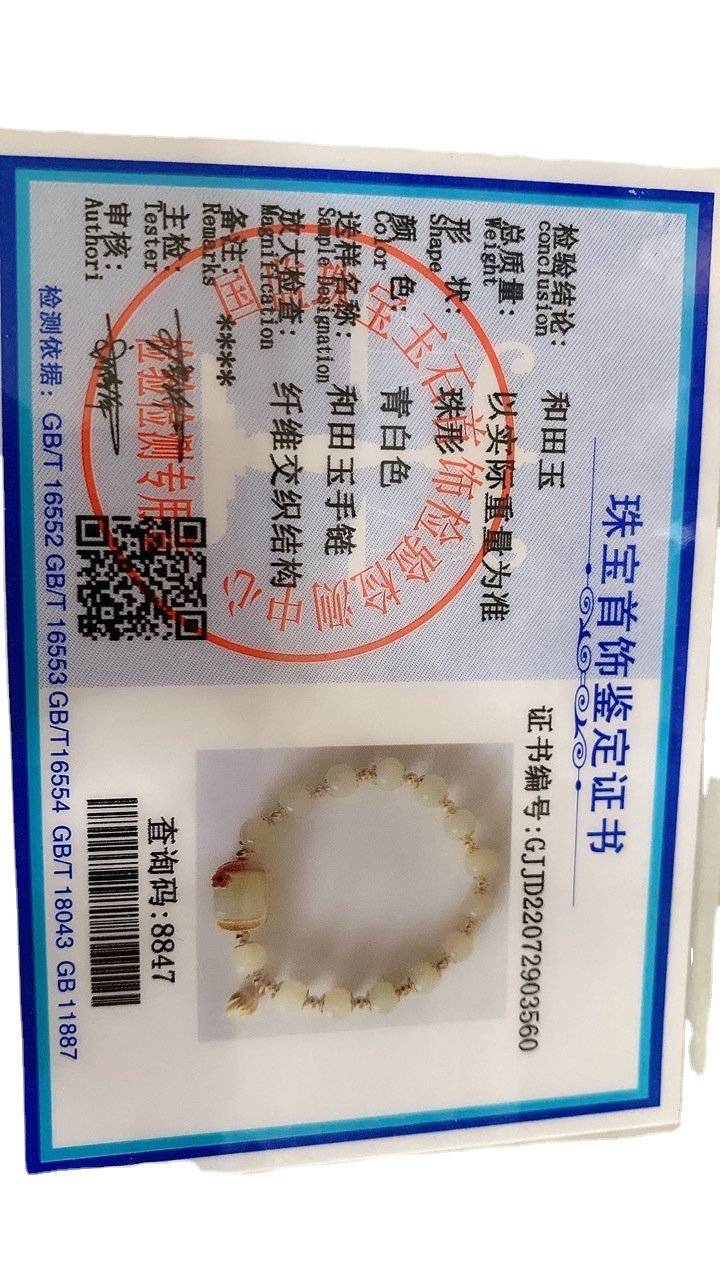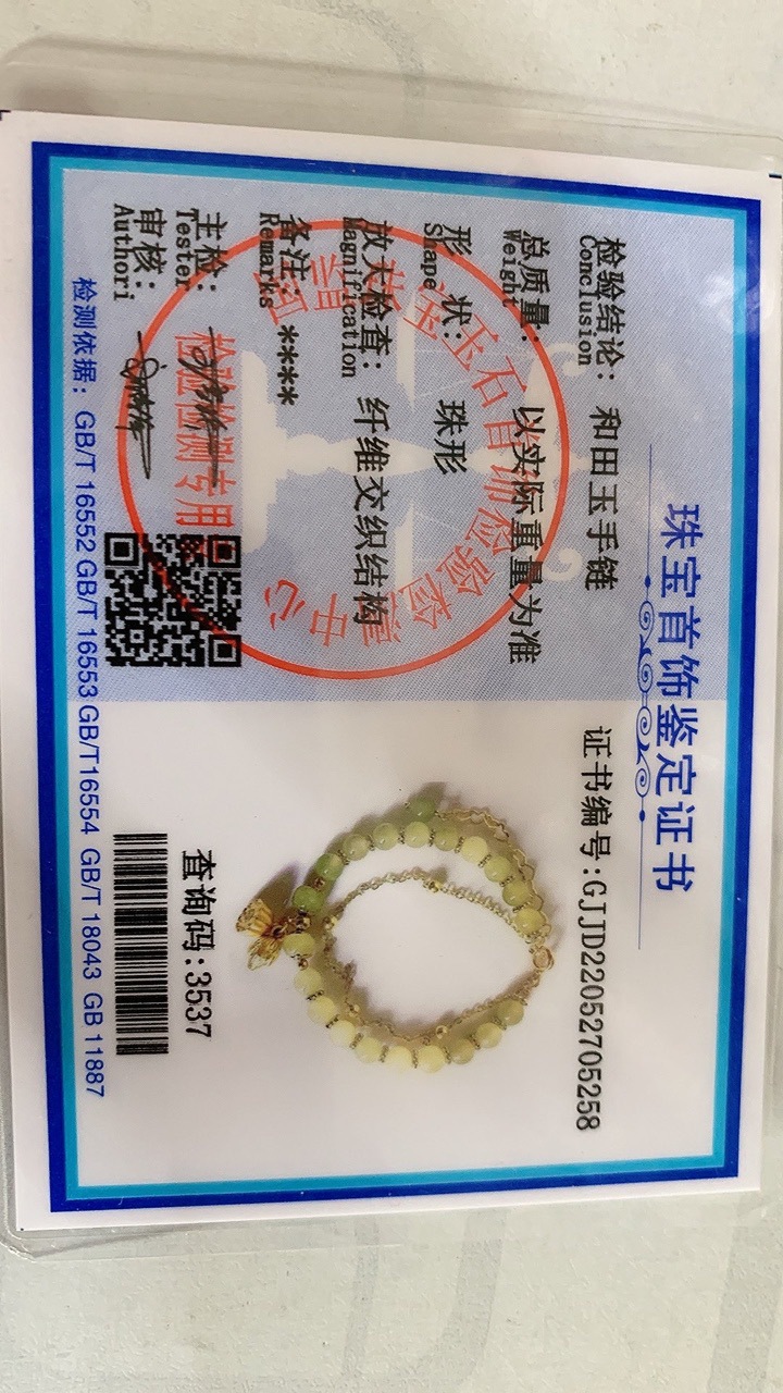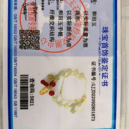 | nameOriginal | Hotan Jade Bracelet Identification Certificate Good Thing Peanut Golden Branches and Jade Leaves Three Life Luckily Ring Palace Bell Sugar |