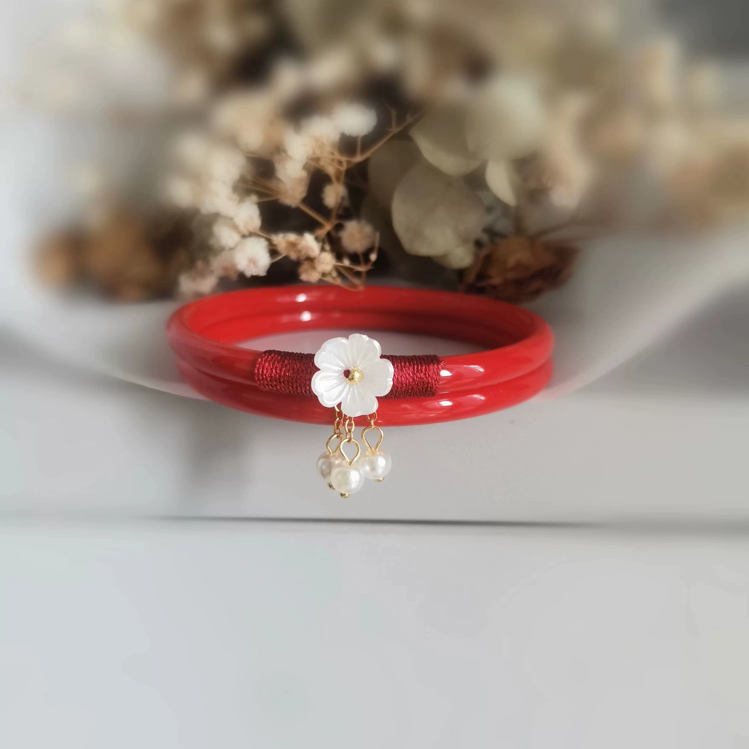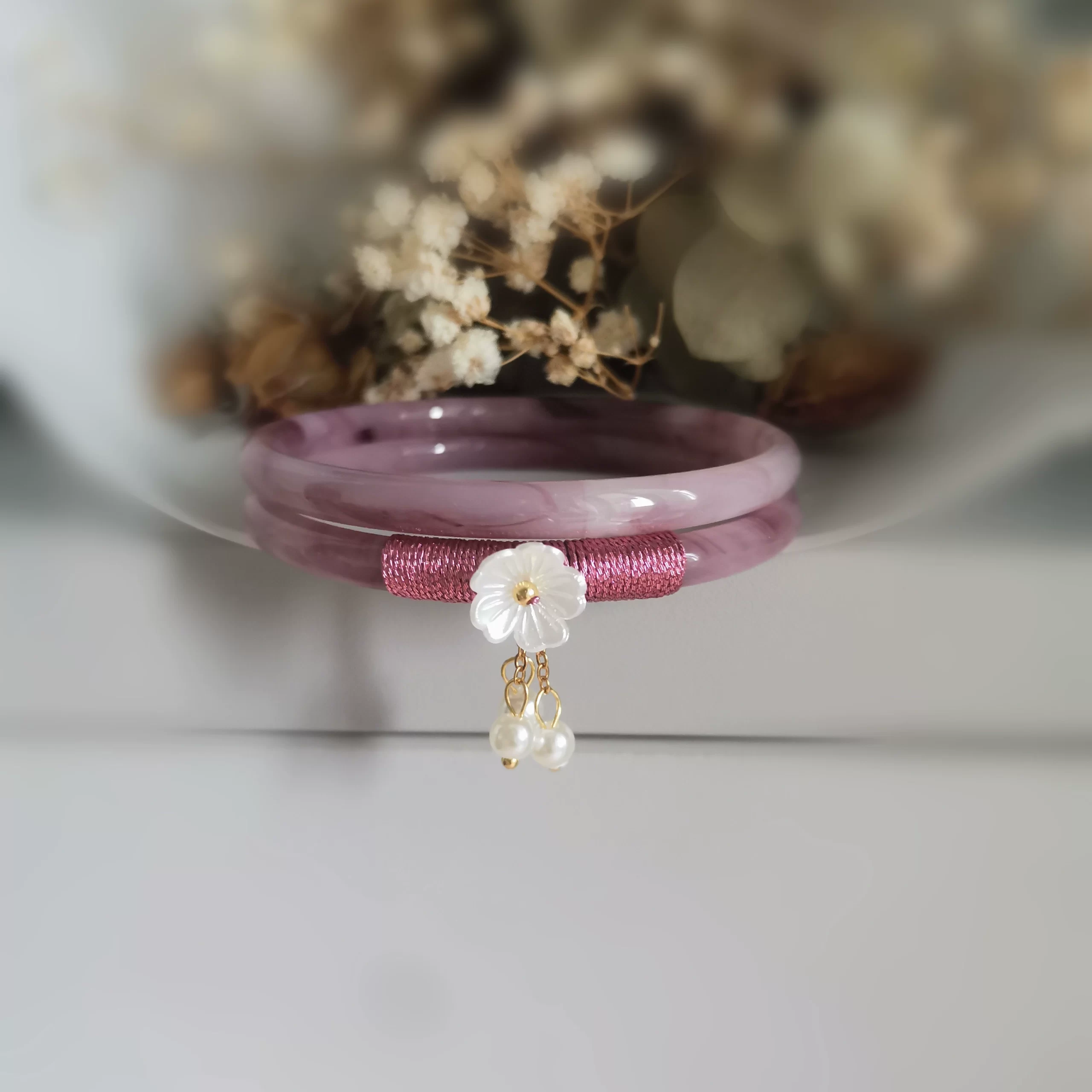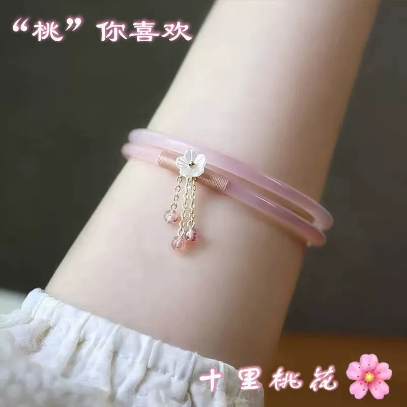 Hotan Jade Girl Thin Pink Forbidden Ring Hanfu Bracelet