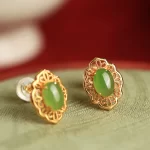 | nameOriginal | Hotan jade sterling silver 18k gold Ruyi earrings for women Chinese style jasper high-end light luxury jade earrings |