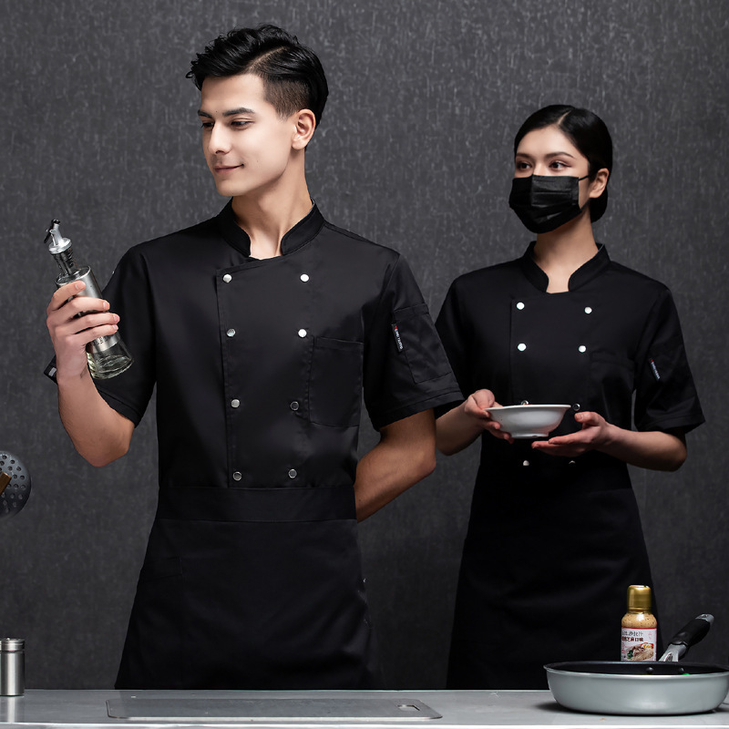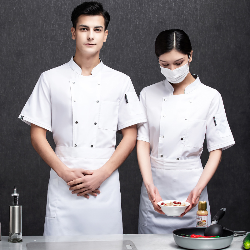 Hotel Chef Clothes Short Sleeve Western Restaurant Hot Pot Fast Food Hotel Kitchen Work Clothes Women’s Summer Printed Logo