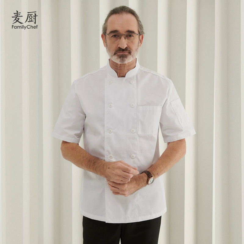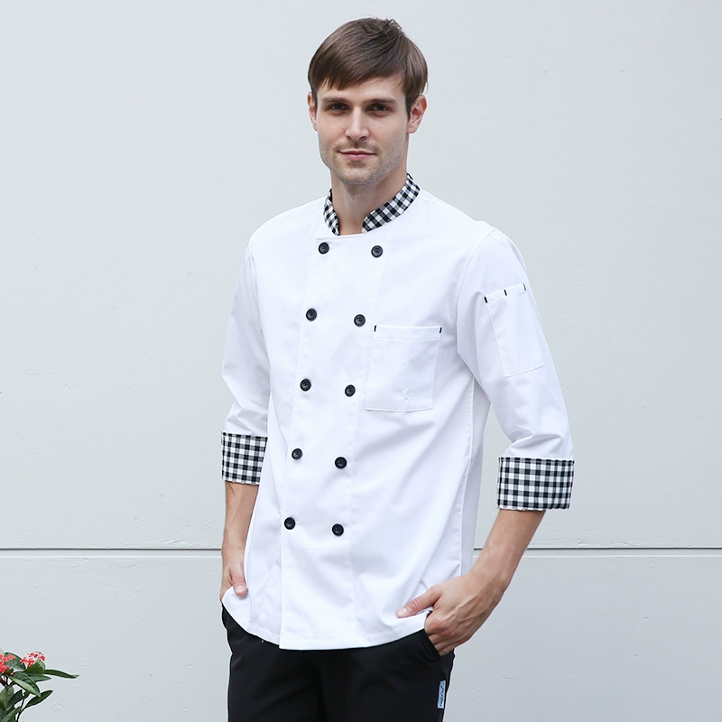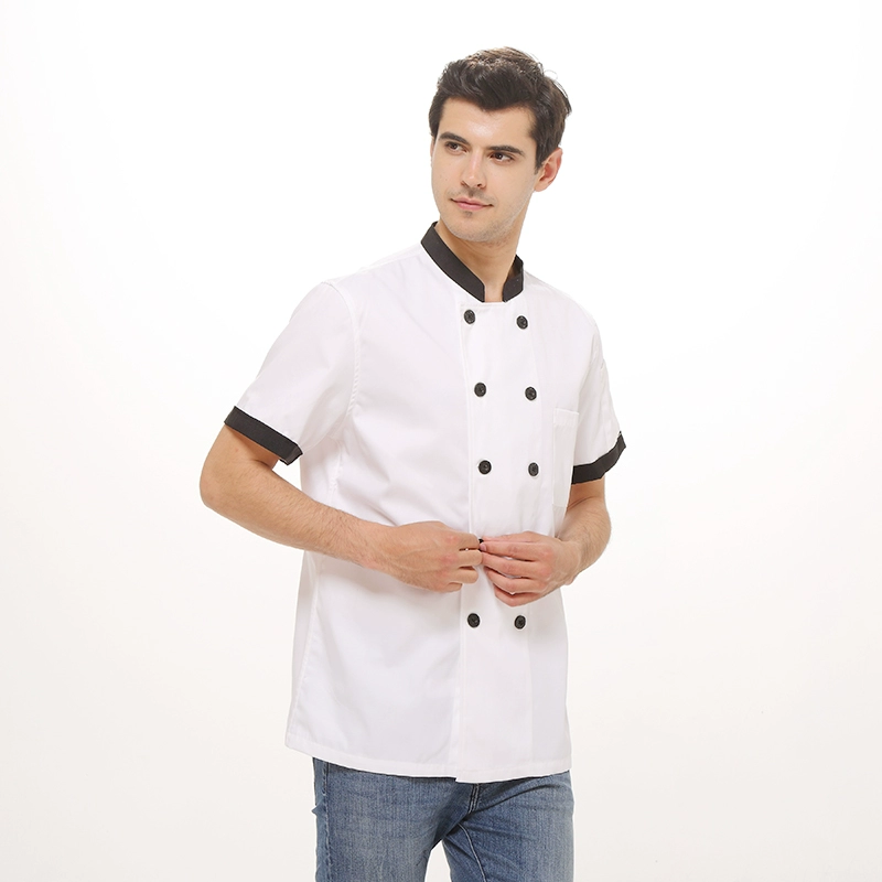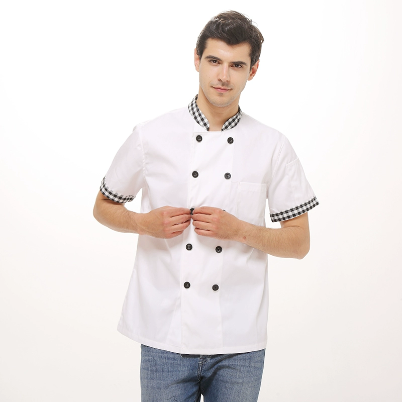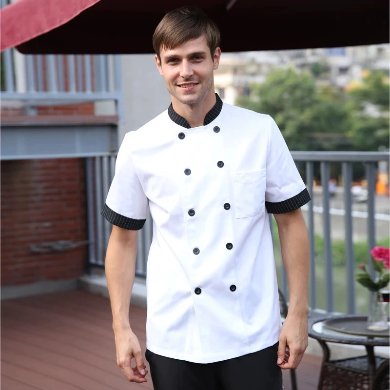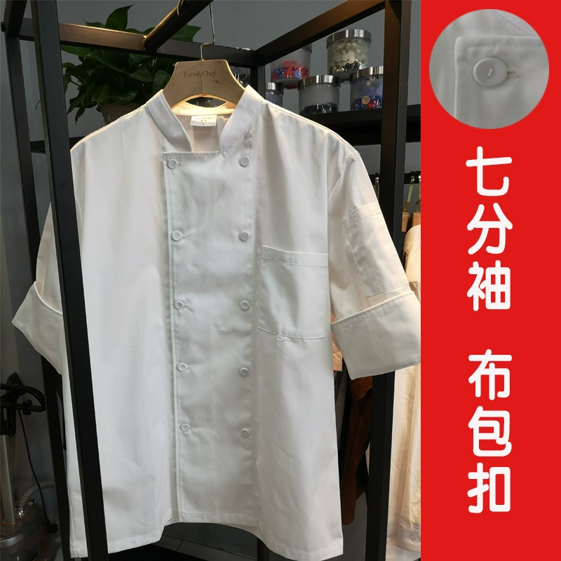 | nameOriginal | Hotel chef uniform summer short-sleeved pure white breathable double-breasted kitchen work clothes canteen restaurant hotel three-quarter sleeves |