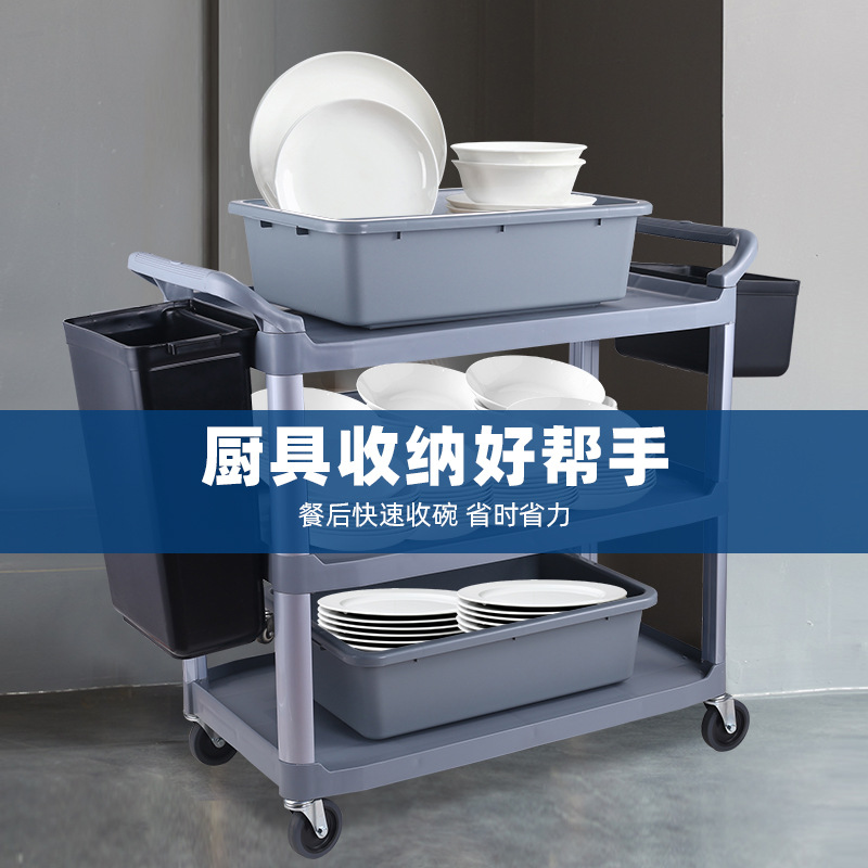 Hotel dining cart three-layer cart size Mobile Bowl cart withdrawal dining cart multifunctional plastic Restaurant Hotel Commercial