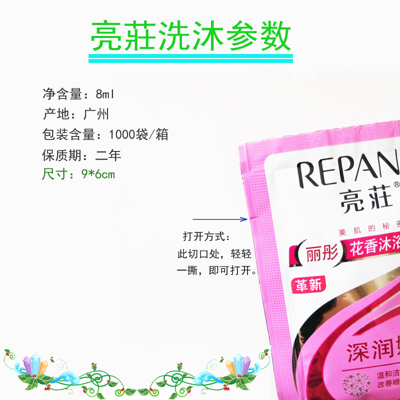 | nameOriginal | Hotel disposable 8ml Litong flower fragrance Liangzhuang shampoo shower gel bag anti-dandruff soft shampoo hair liquid |