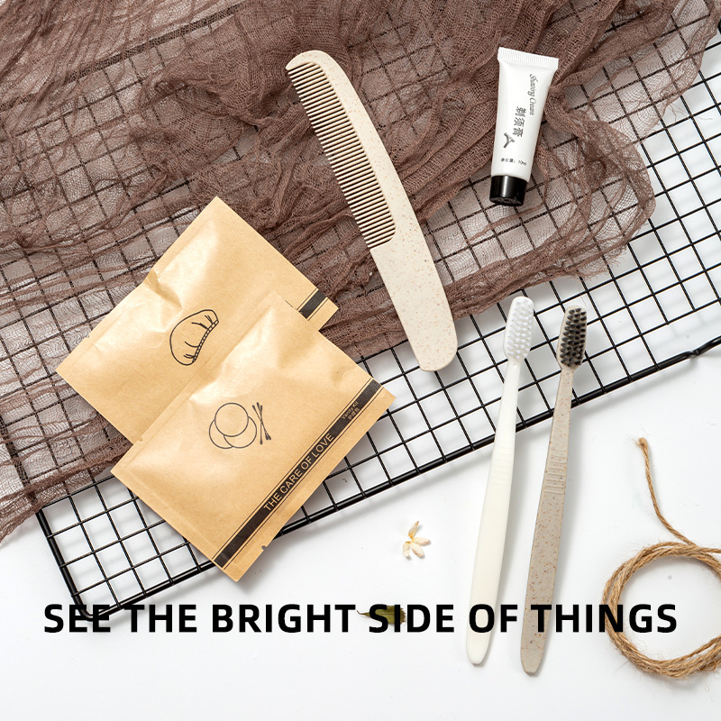 Hotel disposable suit B & B guest room straw toothbrush Kraft paper three-side seal hotel toiletries wholesale