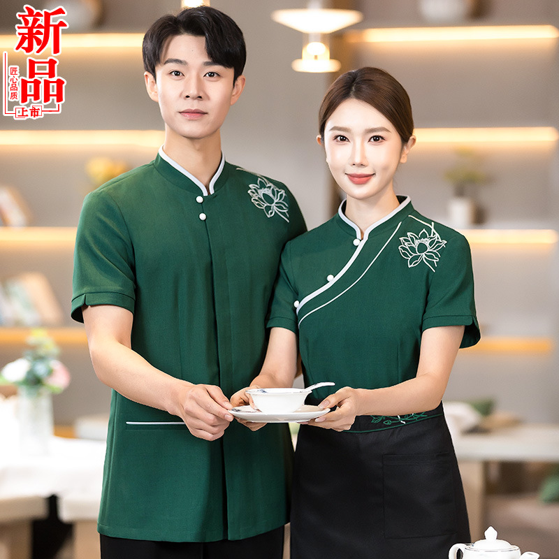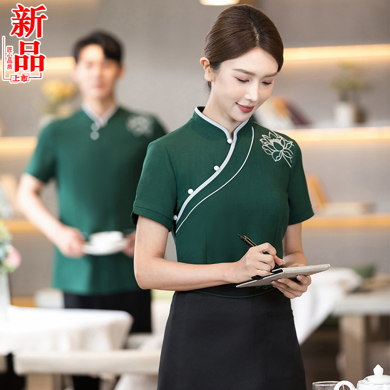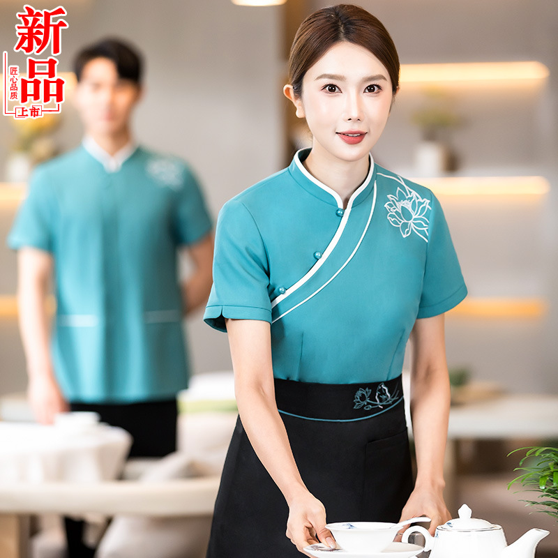 | nameOriginal | Hotel waiter work clothes women's new Chinese high-end catering short sleeve Chinese restaurant hot pot restaurant summer printing |