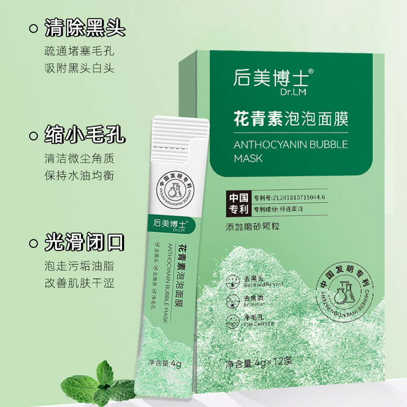 | nameOriginal | Houmei doctor anthocyanins bubble mask deep cleansing shrink pores blackhead removing bubble cleaning mud mask |