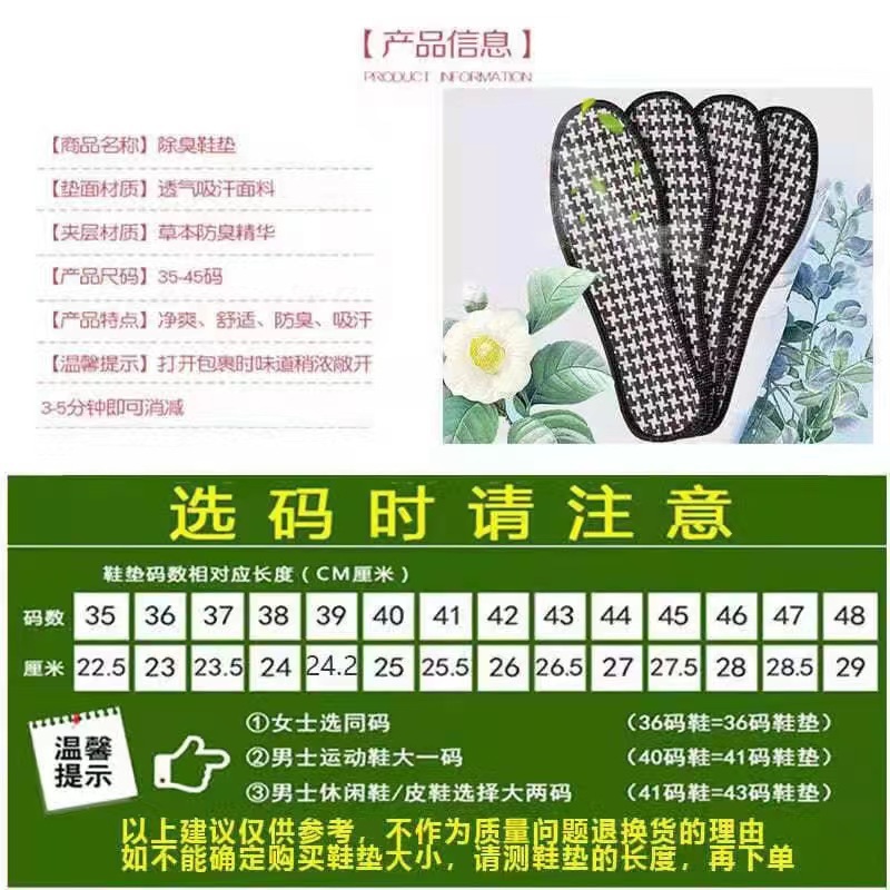 Houndstooth deodorant fragrance men’s sweat-absorbent deodorant four-season insoles women’s breathable and comfortable non-slip canvas shoes military training insoles