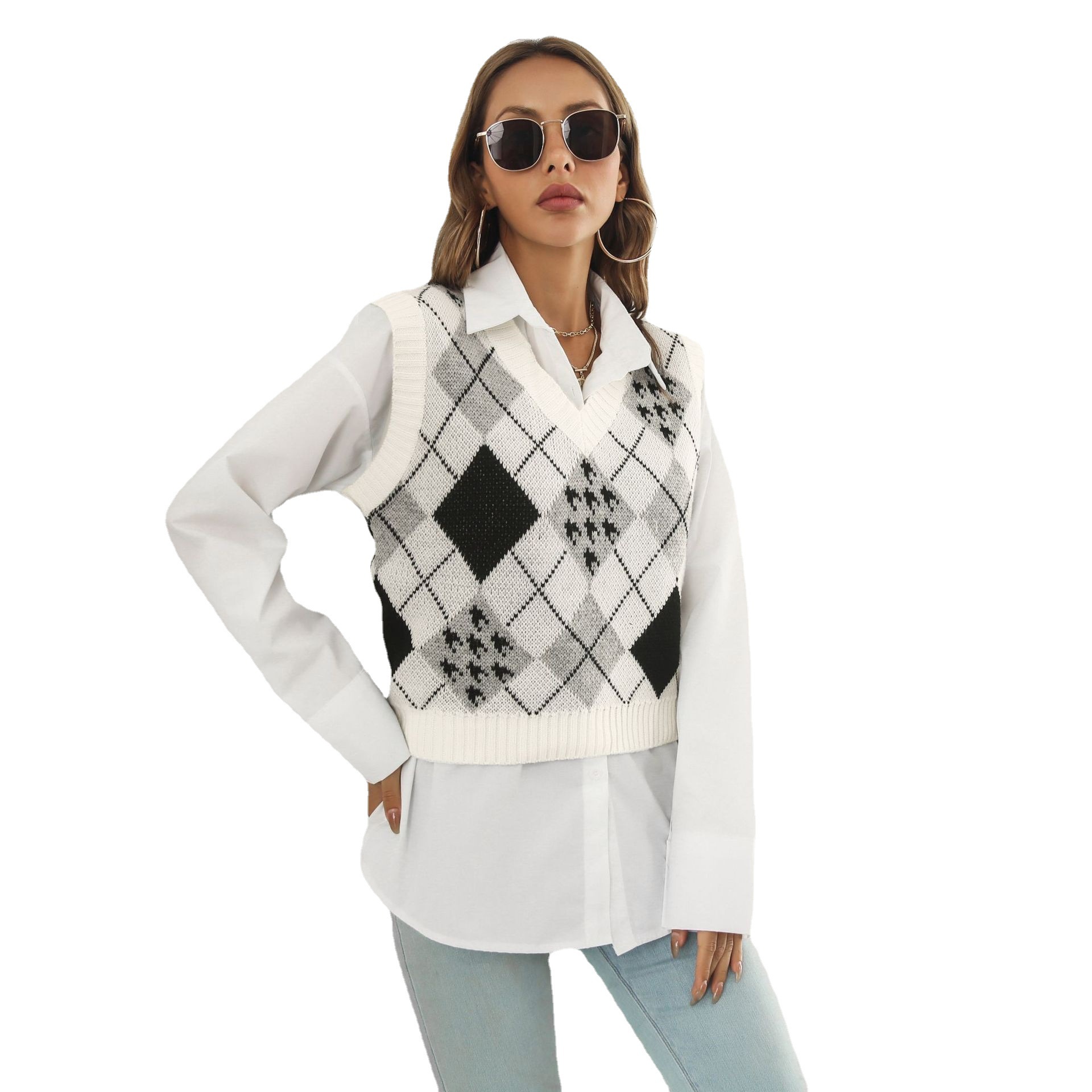 | nameOriginal | Houndstooth Diamond Plaid jacquard vest sweater vest women's autumn and winter ins European and American knitwear cross-border women's clothing New |