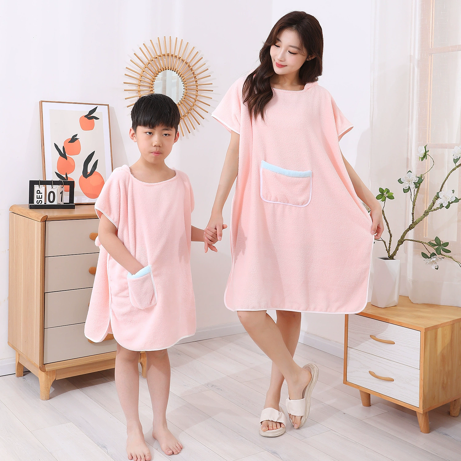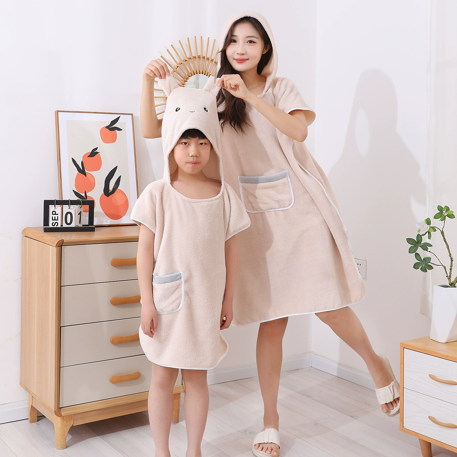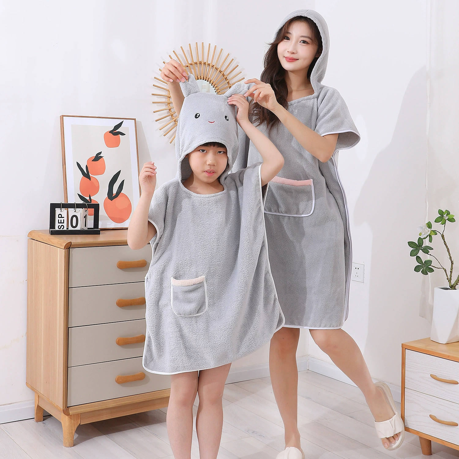 Household clothing, bath towel, hooded, more absorbent than pure cotton, softer, lint-free, quick-drying, cute and wearable bathrobe for adult women