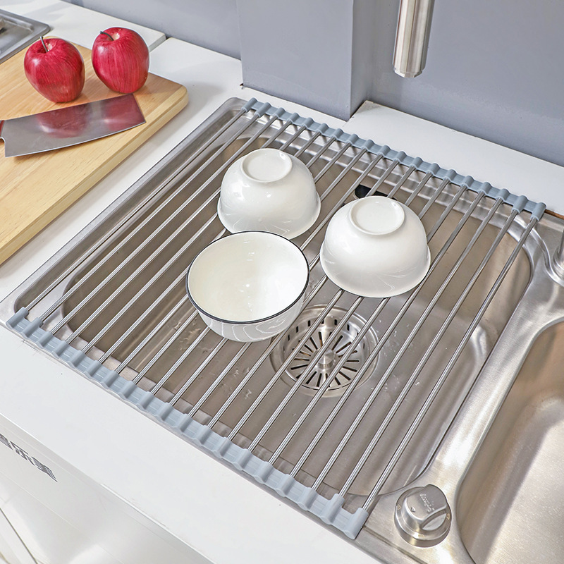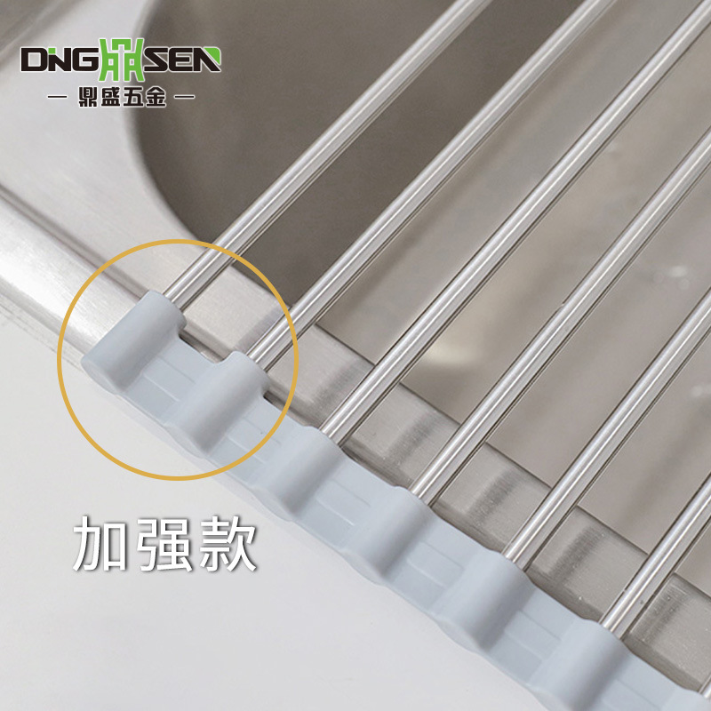 Household Foldable Sink Drain Rack 304 Stainless Steel Sink Fruit and Vegetable Drip Rack for Dishes Water Control Roller Shutter Rack