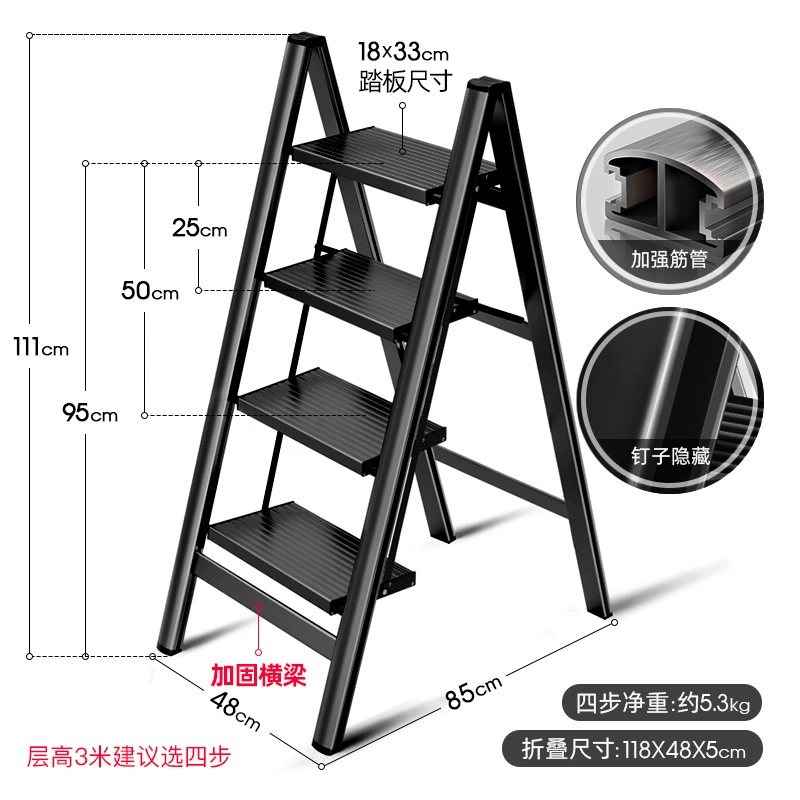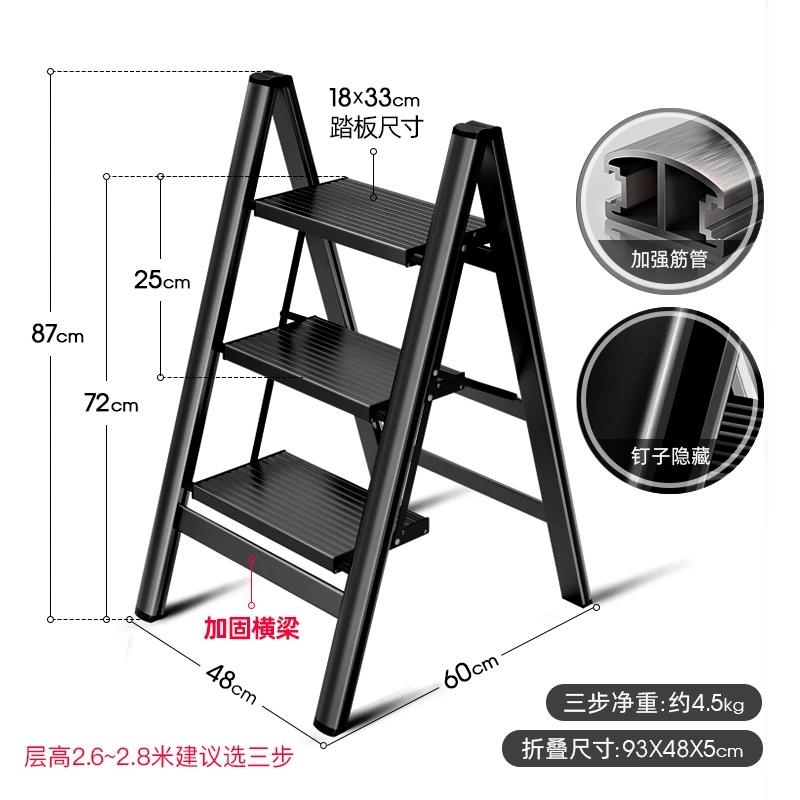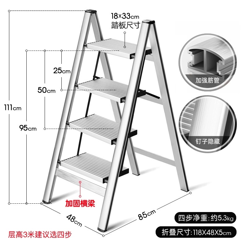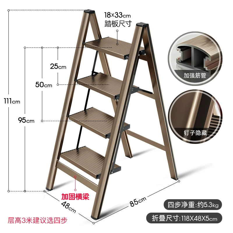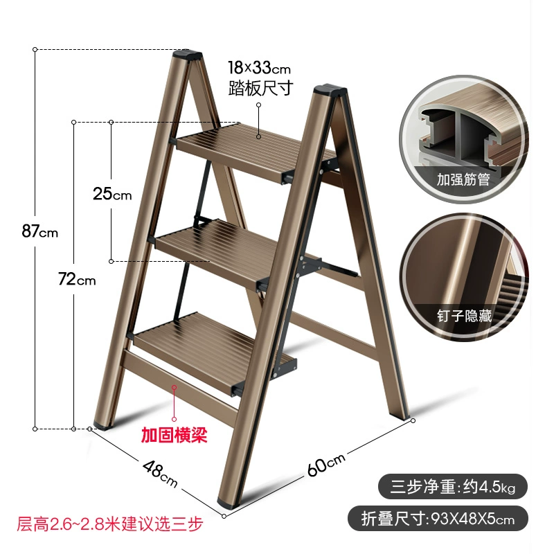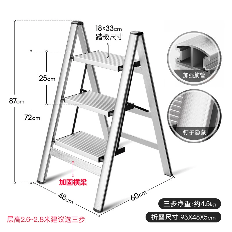 | nameOriginal | Household folding ladder three-step telescopic herringbone ladder housewarming indoor multi-functional thickened aluminum flower stand stair stool |