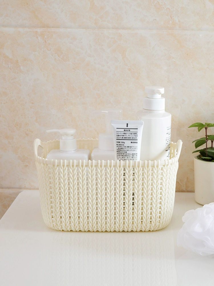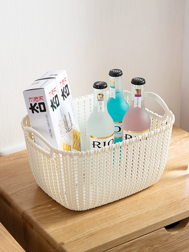 | nameOriginal | Household imitation rattan storage basket debris storage box plastic basket desktop storage box snack mask storage artifact |