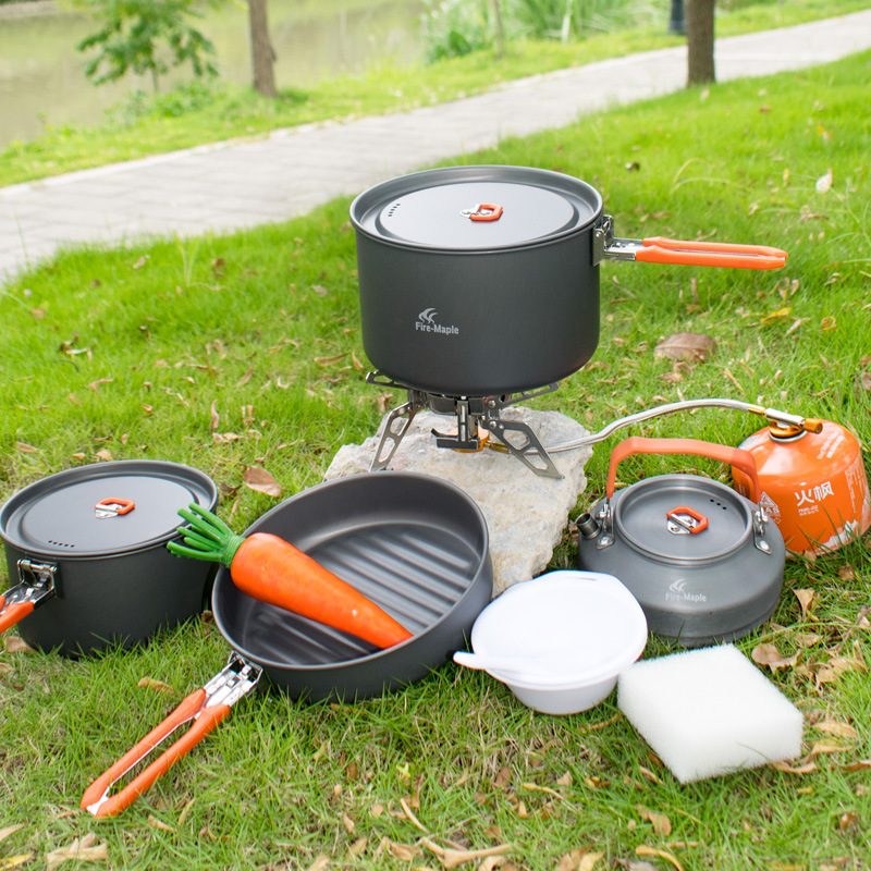 Household Outdoor Cookware Feast 4 Portable Camping Equipment Picnic Complete Set of Cookware Camping Cookware Field Stove suit