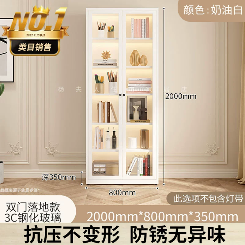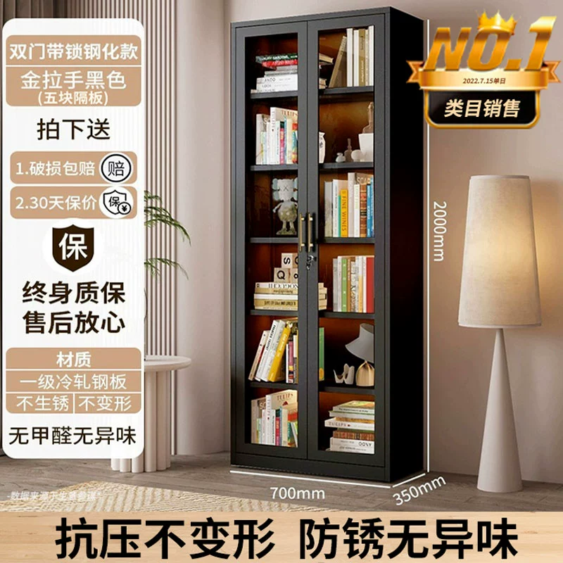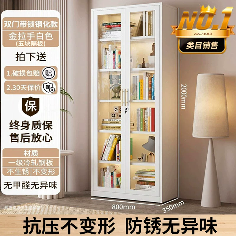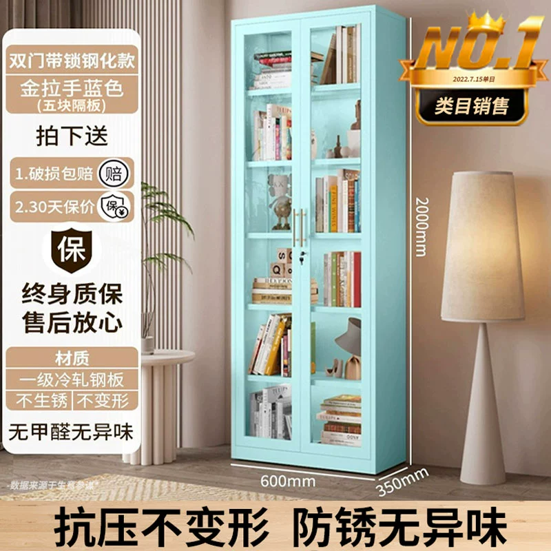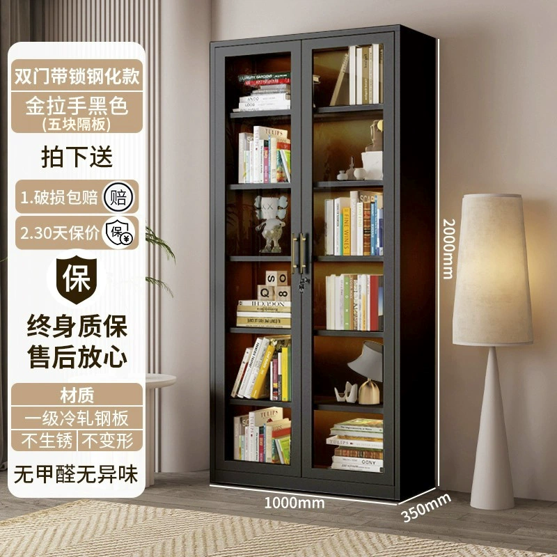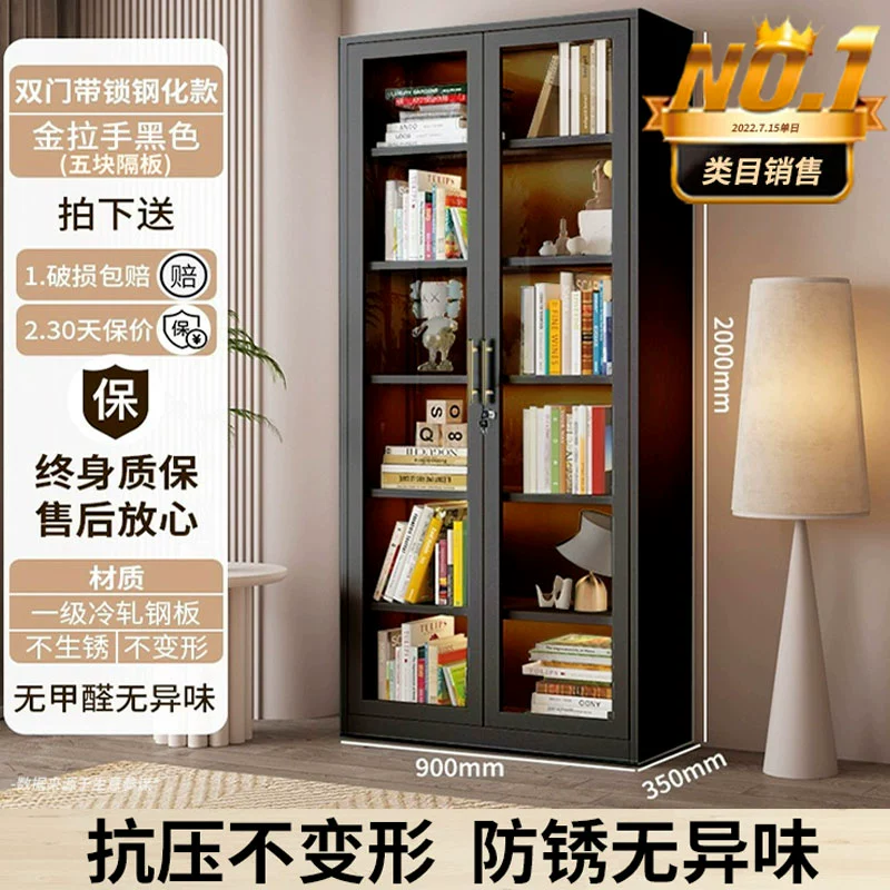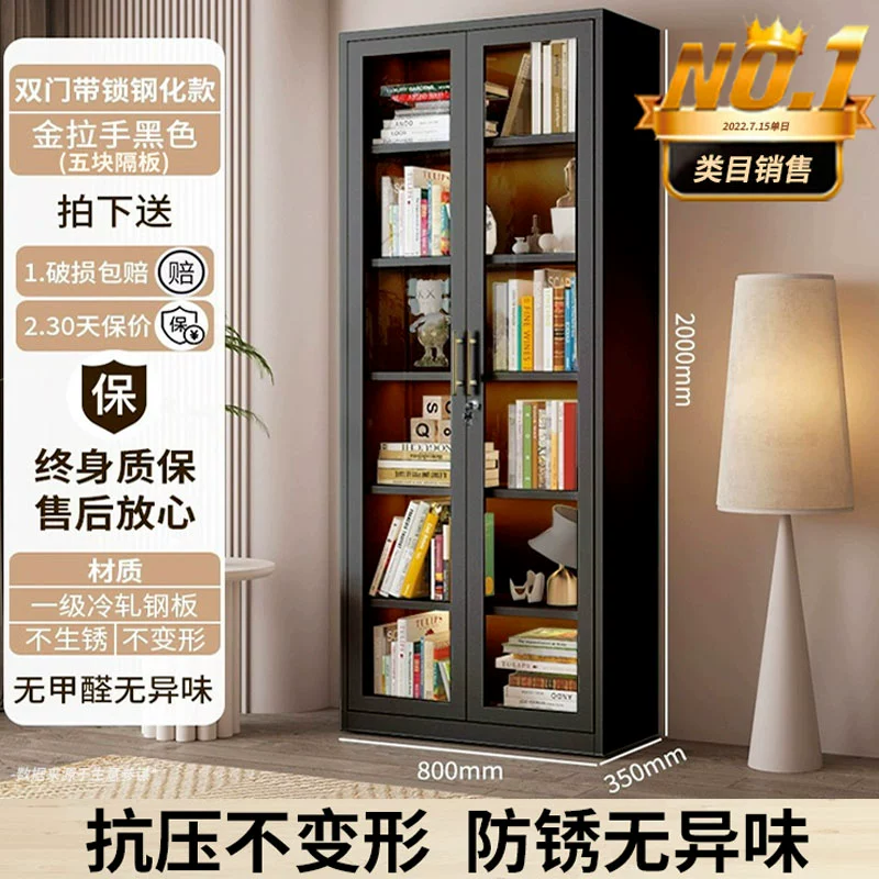 | nameOriginal | Household steel bookcase with glass door display cabinet study floor-standing bookshelf modern simple iron art storage shelf bookcase |