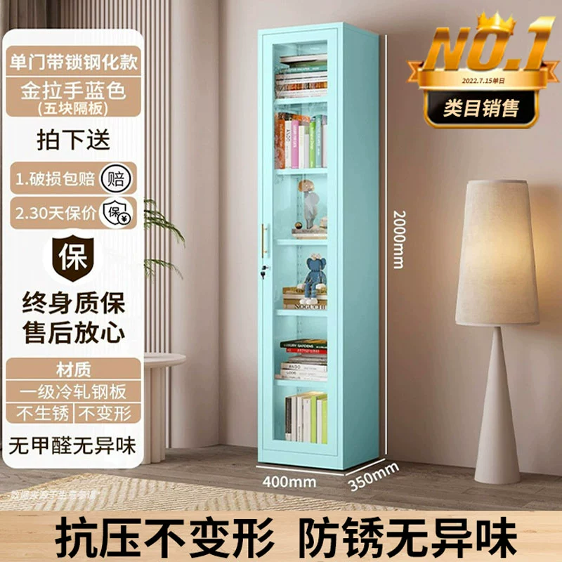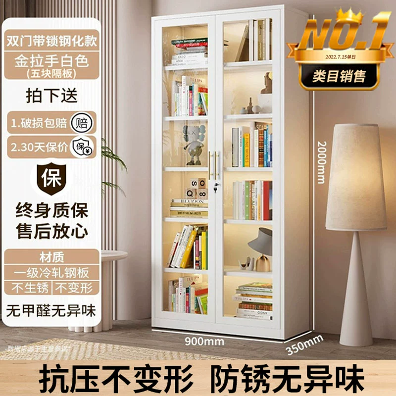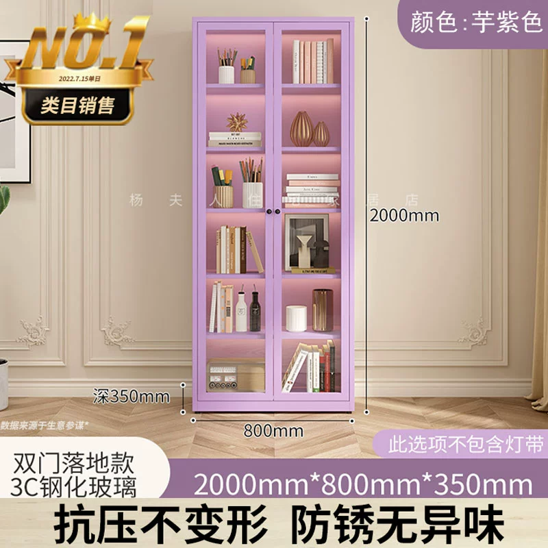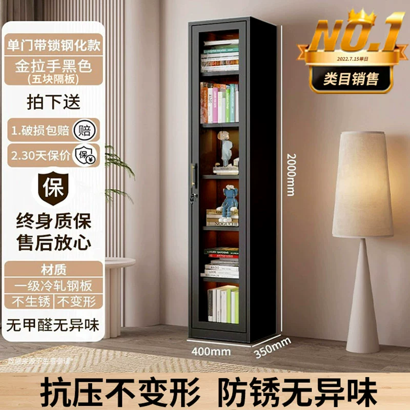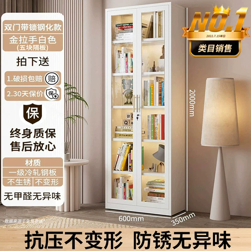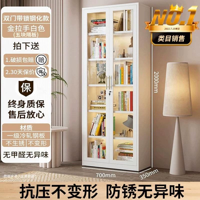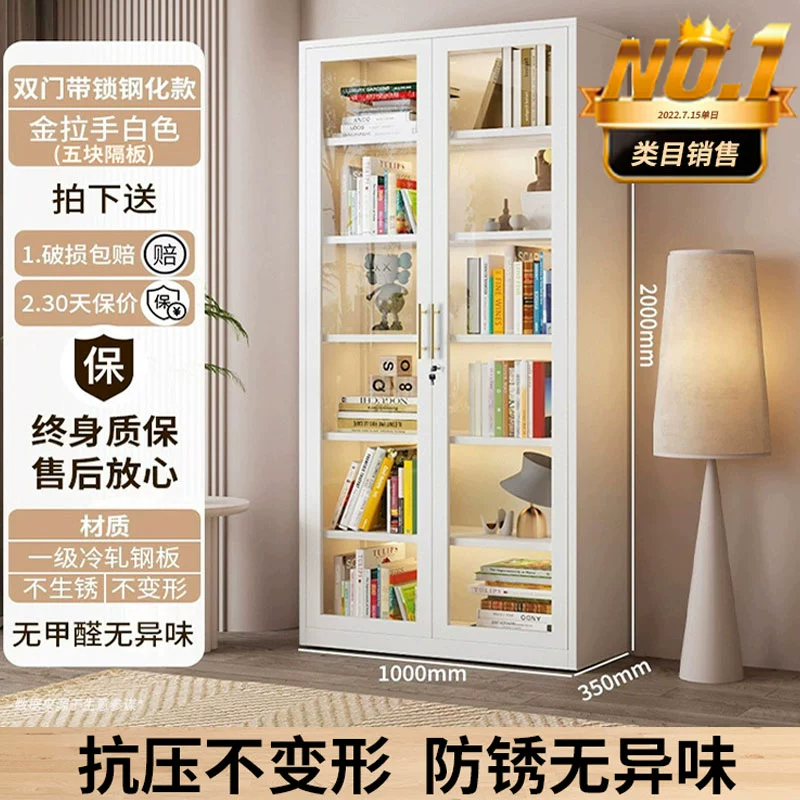 | nameOriginal | Household steel bookcase with glass door display cabinet study floor-standing bookshelf modern simple iron art storage shelf bookcase |
