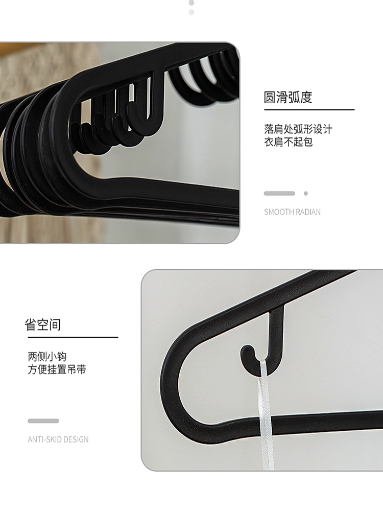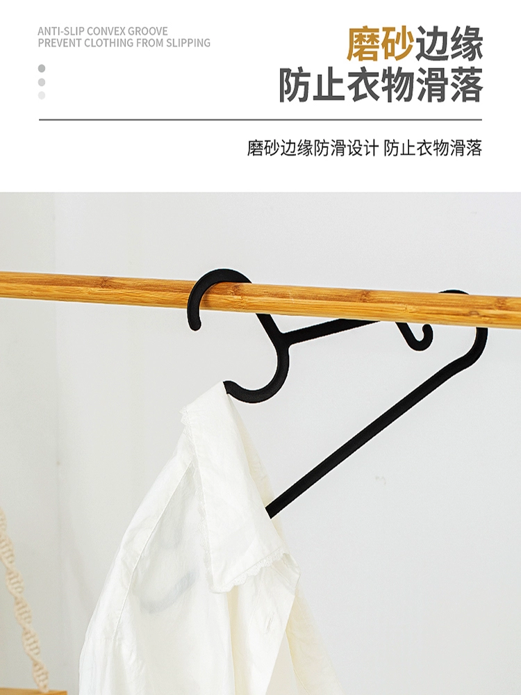 Household traceless simple plastic clothes hanger pants clothes support thickened wide shoulder storage black clothes hanger balcony