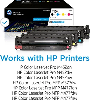 | nameOriginal | HP 410A, CF410A, CF411A, CF412A, CF413A, 4 Toner Cartridges, Black, Cyan, Magenta, Yellow |