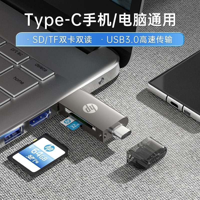 HP/HP usb3.0 mobile phone card reader two-in-one sd card tf memory card converter suitable for type-c equipment notebook computer thin and portable driver-free dual card dual reading