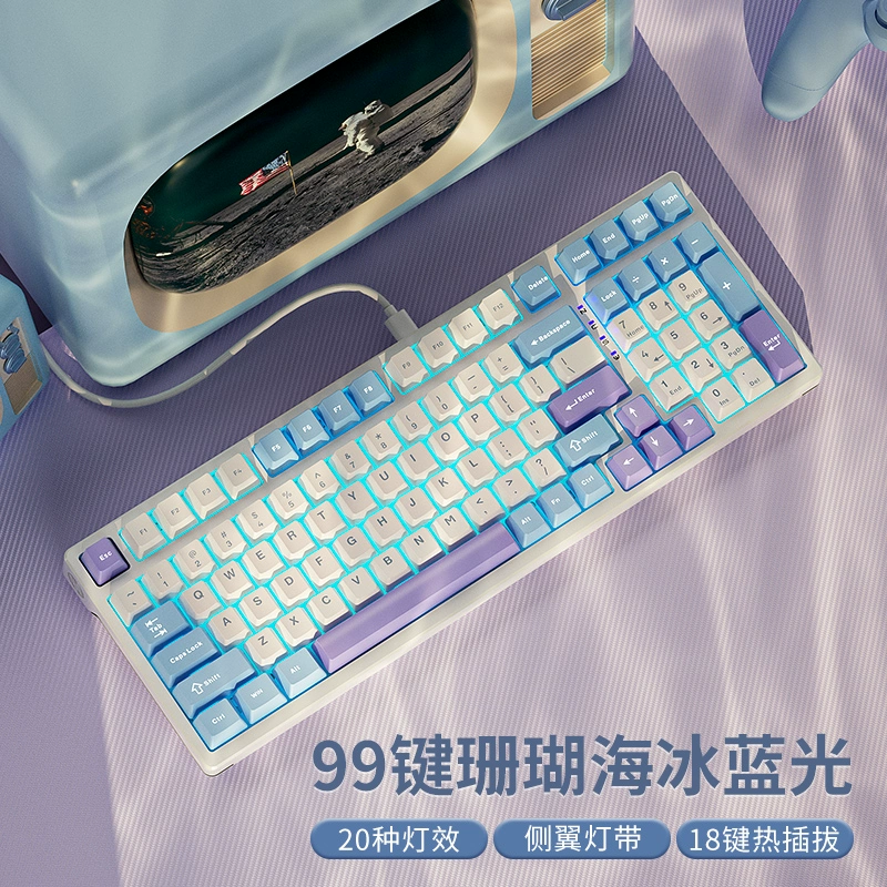 HP Mechanical Keyboard 98 is equipped with hot-swappable male and female optional three-mode Bluetooth wireless keyboard green axis tea red