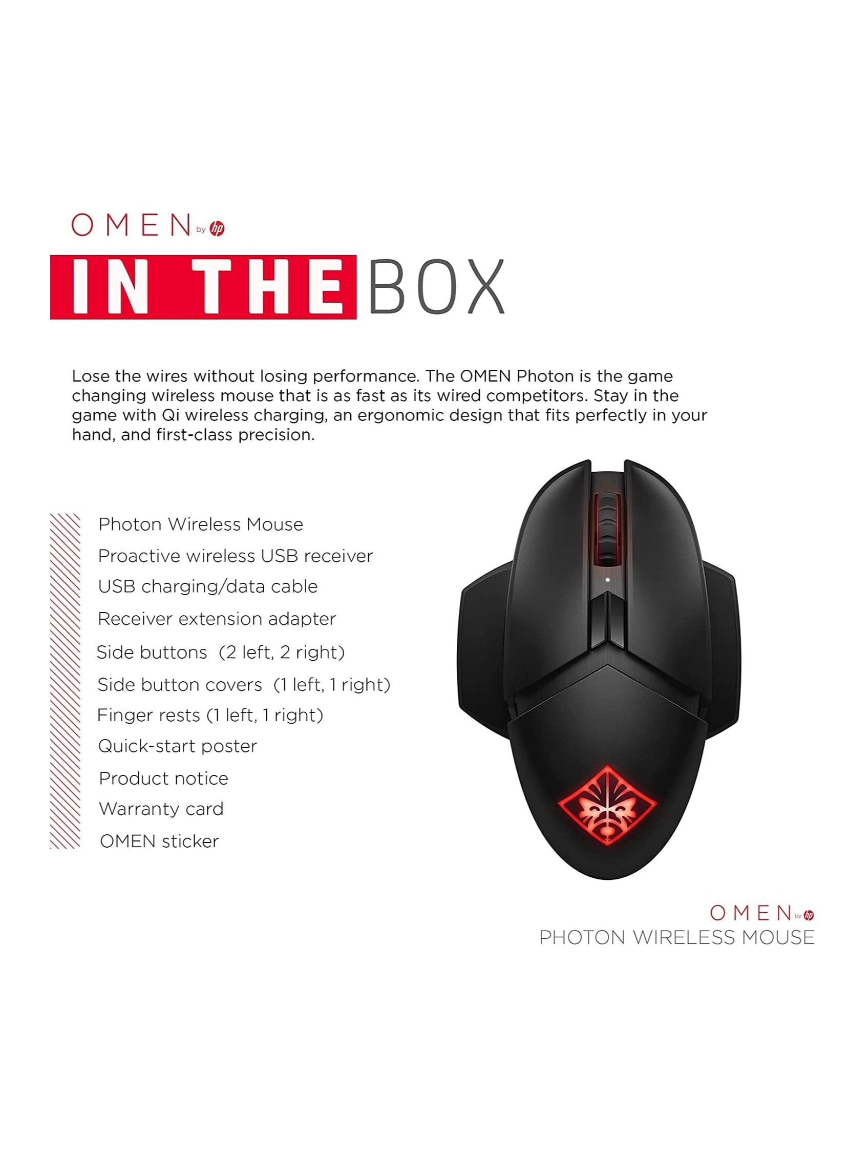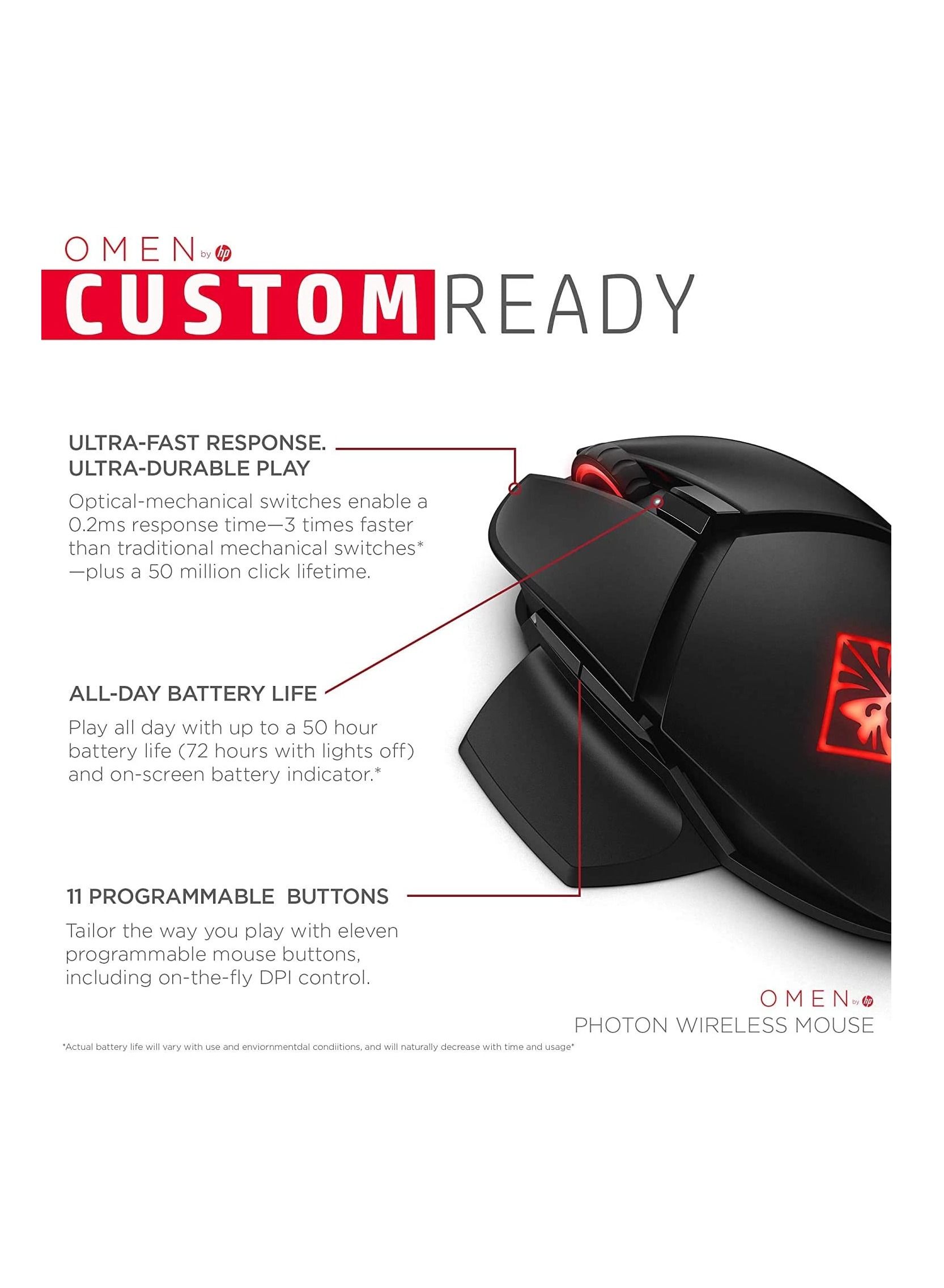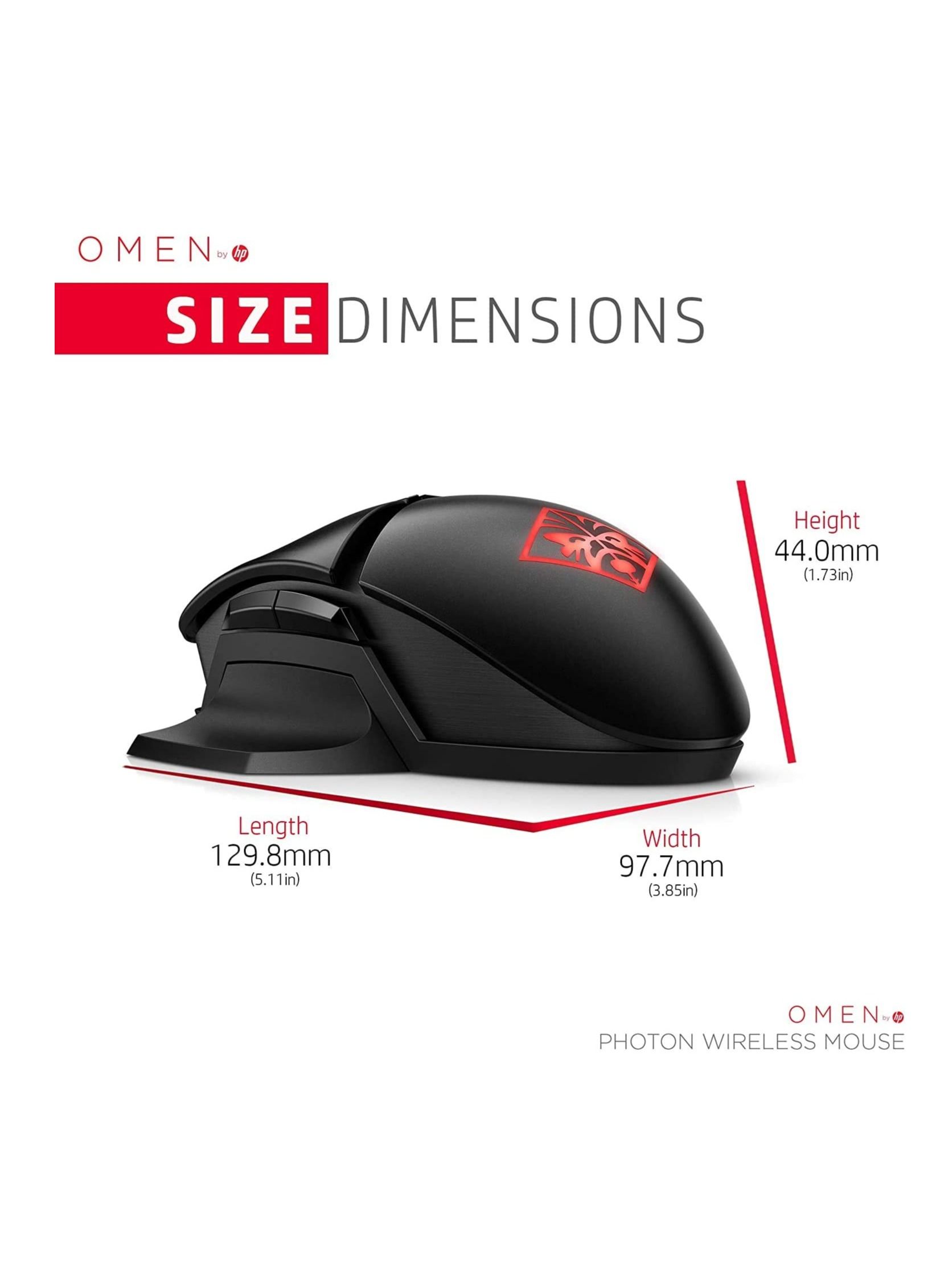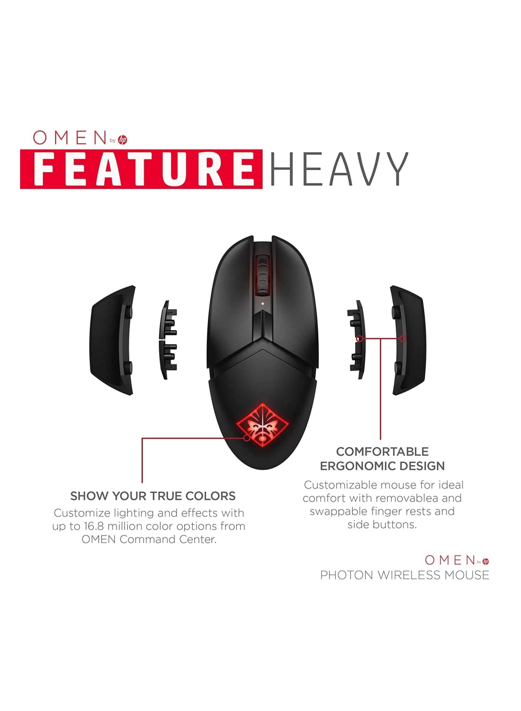 | nameOriginal | Omen by HP Photon Wireless Gaming Mouse with Qi Wireless Charging, Programmable Buttons, E-Sport DPI, and Custom RGB Lighting Black |