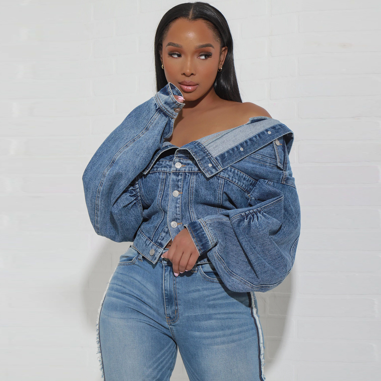 | nameOriginal | HR23091 European and American fashion women's cross-border supply Y2K style irregular two wear Denim coat |