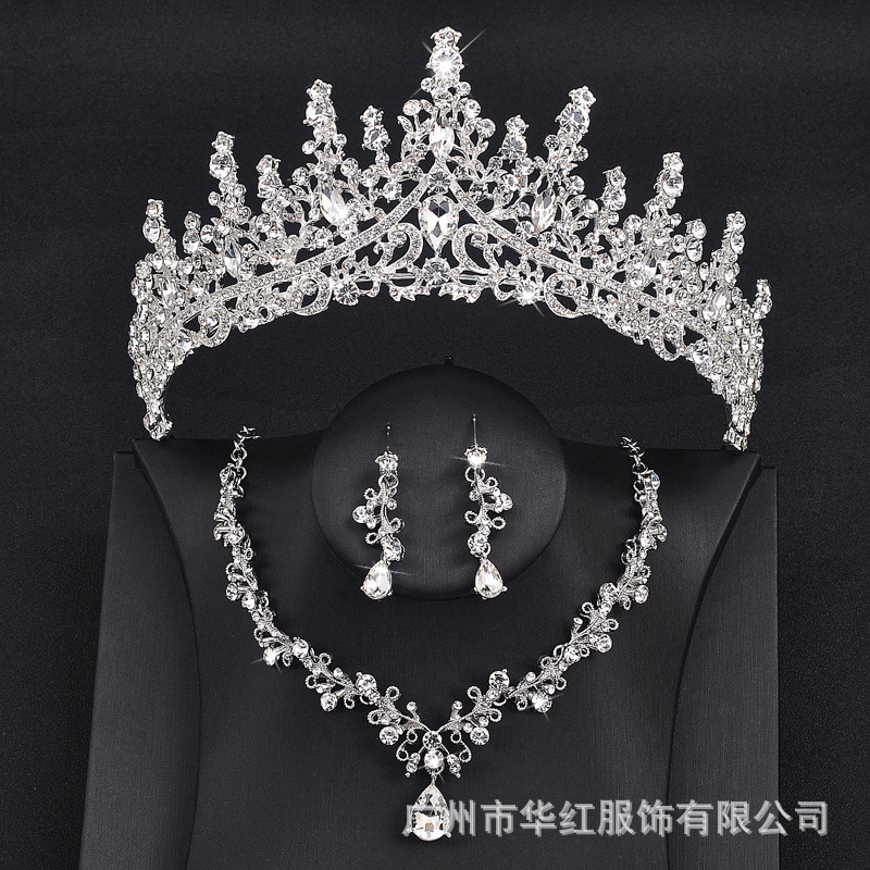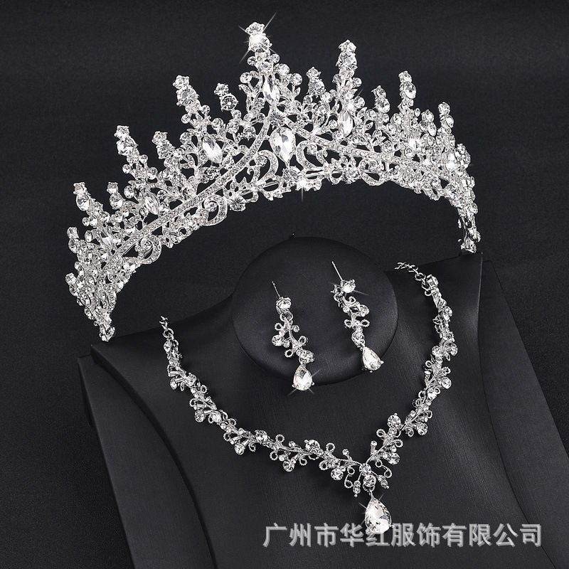 | nameOriginal | Huahong Wedding Jewelry Bride Wedding Jewelry Three-piece Crystal Crown Necklace Earrings Set Model Live Jewelry |